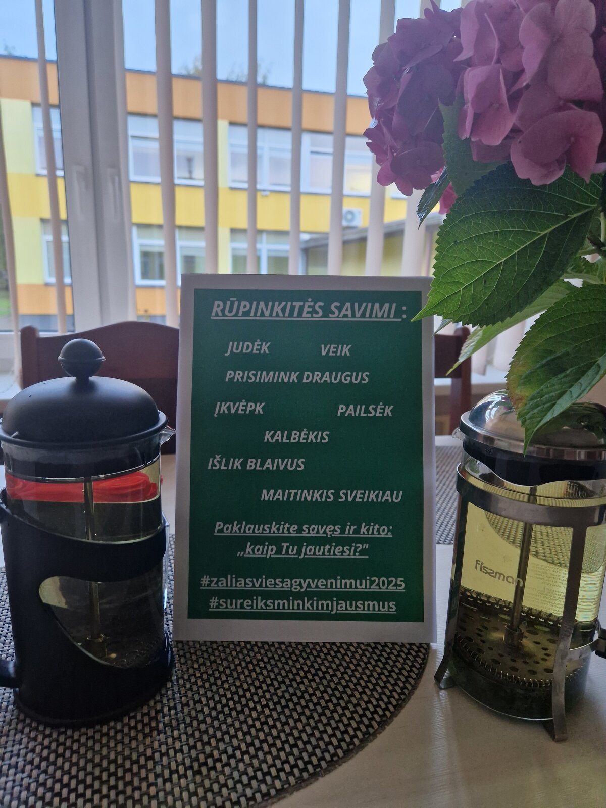 Šiandien minima Pasaulinė psichikos sveikatos diena, tad ta proga Šiaulių lopšelis-darželis „Pupų pėdas“ jungiasi prie “Jaunimo linijos” organizuojamos nacionalinės akcijos „Žalia šviesa gyvenimui“. Rinkdamiesi žalią spalvą mes atkreipiame dėmesį į tai, kaip yra svarbu skirti dėmesio savo ir šalia esančių žmonių emocinei ir psichinei sveikatai. Spalio 10-oji – diena, kai primename sau ir kitiems: kalbėti apie jausmus nėra silpnumo ženklas, o drąsa. Būkime šviesa vieni kitiems.