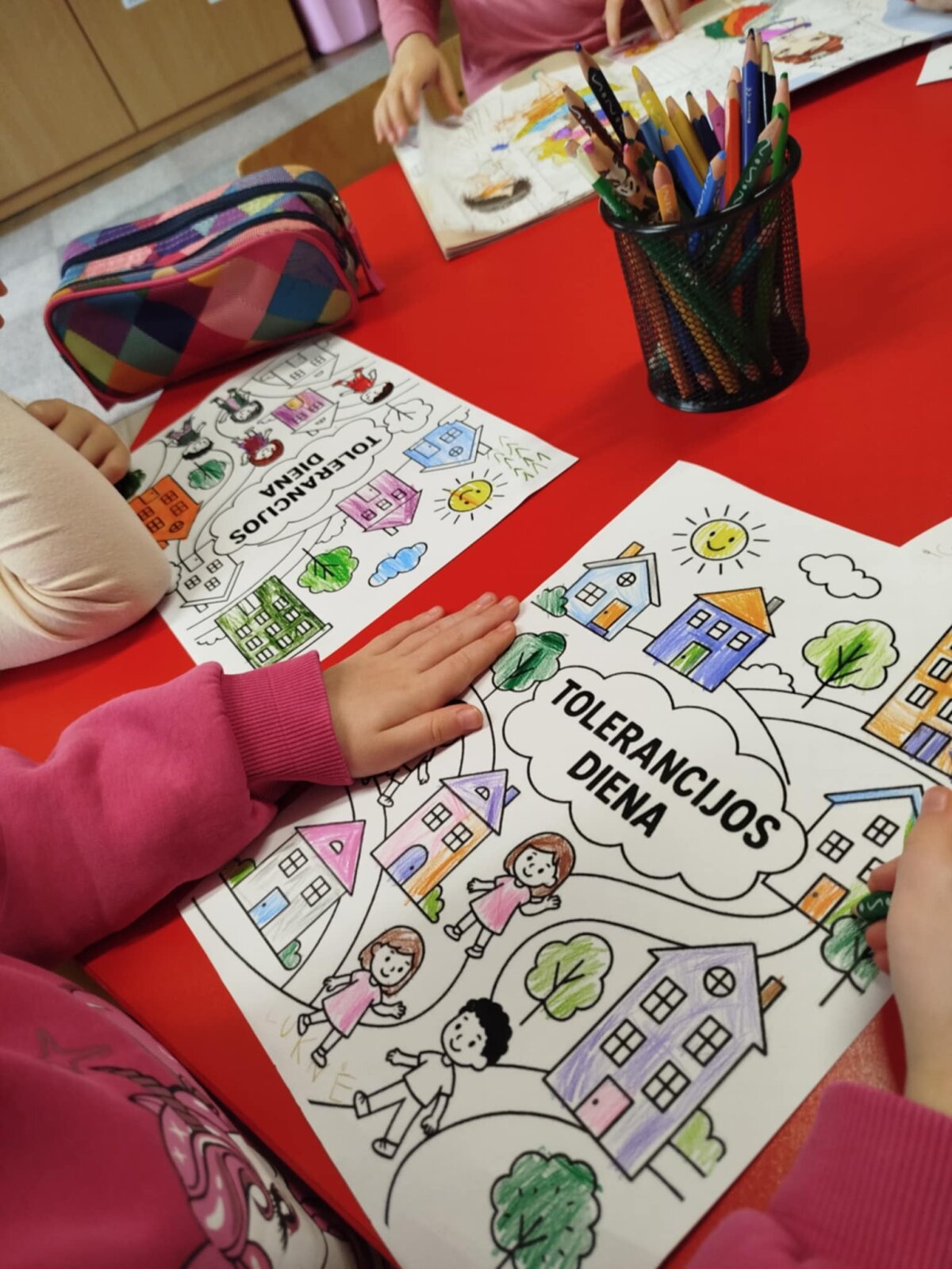 Ši savaitė mūsų darželyje skirta Tolerancijos dienai paminėti. Mūsų darželio vaikai sukūrė „Tolerancijos gatvę", spalvingą ir draugišką vietą, kurioje gyvena pagarba, draugystė ir gerumas. Vaikai piešė, karpė, lankstė popierinius namelius. Kiekvienas namelis simbolizuoja skirtingą žmogų, šeimą ar vertybę. Sujungę visus namelius, sukūrėme gatvę, kurioje visi yra laukiami ir priimami. Vyko aptarimas, kokie žmonės gyvena „Tolerancijos gatvėje“, kaip jie elgiasi, kaip padeda vieni kitiems. Lapkričio 13 d. „Ežiukų“ grupėje vyko integruota STEAM veikla „Tolerancijos gatvė ir aš“. Tolerancijos savaitę užbaigė „Drugelių" ir „Gėlyčių" grupės, kurios dalyvavo virtualioje viktorinoje „Tolerancijos spalvos". Viktorina skirta ikimokyklinio ir priešmokyklinio amžiaus vaikų socialinių ir emocinių kompetencijų ugdymui.