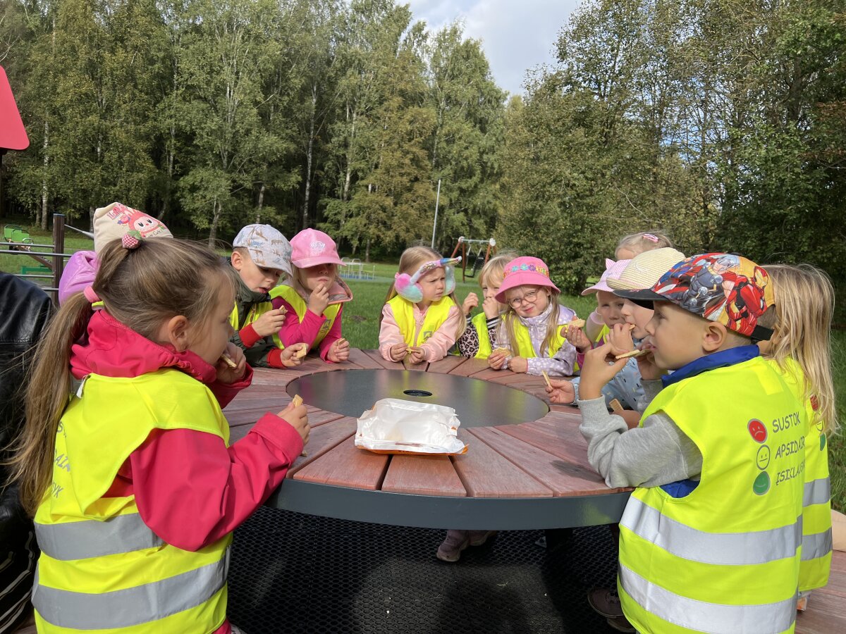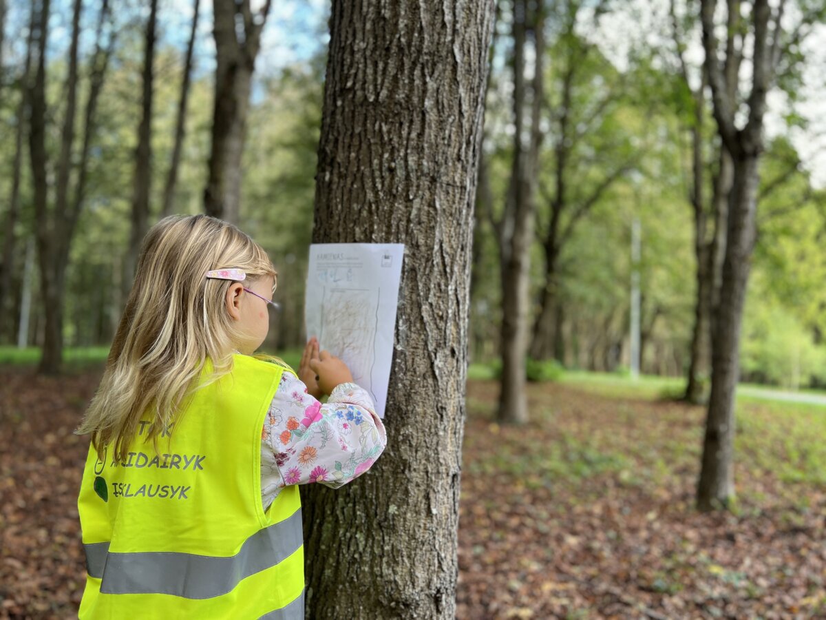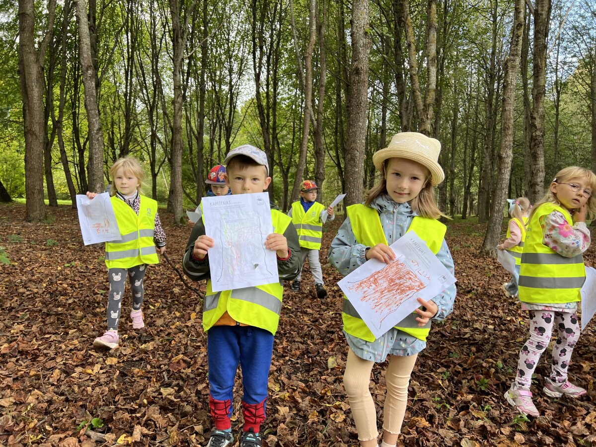 Spalio 19 dieną „Drugelių“ grupės ugdytiniai lankėsi Dainų parke. Išvykos tikslas – stebėti ir tyrinėti parke augančius medžius, mokytis juos atpažinti bei susipažinti su žievės faktūrų įvairove per STEAM veiklą. Vaikai stebėjo skirtingų medžių rūšis: ąžuolą, klevą, kaštoną, beržą, lygino jų lapus, vaisius ir žievę. Aptarė medžio sandaros dalis: šaknis, kamieną, šakas, lapus ir spyglius. Paskui visi buvo pakviesti dalyvauti praktinėje STEAM veikloje. Vaikai kūrė medžių žievės atspaudus: prispaudę popierių prie kamieno ir švelniai braukdami vaškinėmis kreidelėmis, stebėjo, kaip išryškėja įvairios žievės tekstūros. Pastebėjome, kad ne visuomet lengva atskirti medžių rūšis vien pagal žievės atspaudą. Kai kurios žievės labai panašios, o ne visi anspaudai išgaunami ryškūs. Tai paskatino vaikus domėtis dar labiau, todėl nusprendėme tęsti medžių pažinimą ir gilinti žinias tiek parke, tiek darželio ar namų lauko aplinkoje. Po praktinės veiklos vaikai smagiai leido laiką žaidimų aikštelėje, džiaugėsi rudenišku oru ir buvimu gamtoje. Ši išvyka paskatino vaikus mokytis per patirtį, tyrinėjimą ir žaidimą.