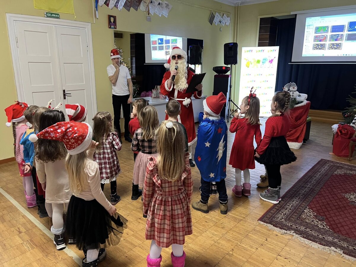 Kalėdos – tai metas, kai širdys prisipildo šilumos, stebuklo laukimo ir nuoširdaus džiaugsmo. 2025 m. gruodžio 19 d. „Drugelių“ grupės vaikai patyrė tikrą šventinę pasaką, keliaudami į Kalėdų senelio rezidenciją. Vos išlipus iš autobuso vaikus pasitiko nepaprastas vaizdas – išpuošta visa menų mokykla ir lauko ir vidaus aplinkos. Pasigrožėję išpuošta aplinka prie mūsų prisijungė dvi nuostabios elfės, kurios pakvietė visus leistis į nuotykių kupiną kelionę po kerinčią rezidenciją. Mažieji įžengė į jaukų elfių kambarėlį, kur jų laukė nykštukas. Čia vaikai išsakė savo Kalėdinius norus, pasidalino mintimis, svajonėmis apie Kalėdas. Staiga pasirodė pats Kalėdų senelis. Vaikų akys suspindo džiaugsmu, jie kartu su seneliu šoko, žaidė ir leidosi į smagią dovanų paiešką. Kelionė tęsėsi iki pat Kalėdų senelio namų, kuriuose laukė maloni staigmena – kiekvienas vaikas buvo apdovanotas dovana. Tai buvo diena, kupina džiaugsmo, tikėjimo stebuklais ir šventinės magijos.