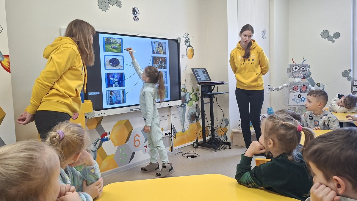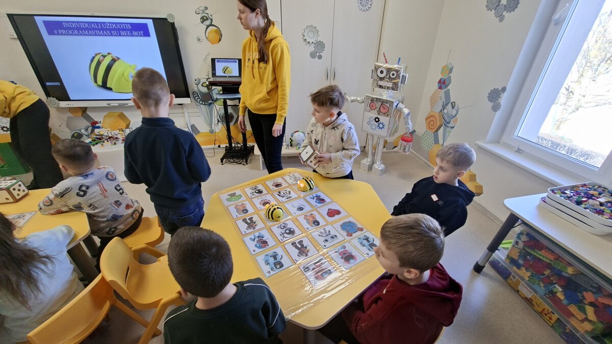 „Meškučių“ grupės ugdytiniai kovo 9 d. vyko į Šiaulių lopšelį-darželį „Eglutė“, kur dalyvavo STEAM veikloje „Išmanieji draugai: kodai, robotukai ir mes“. Veiklos metu vaikai susipažino su seniausiu robotu, robotų įvairove bei jų funkcijomis. Praktinės veiklos metu ugdytiniai konstravo ir statė savo robomodelio prototipą, kurį vėliau pristatė visai grupei. Taip pat vaikai atliko užduotį su programavimo žingsniais ir rodyklėmis. Susipažinę su sąvoka „pikselis“, jie turėjo užkoduoti „BeeRobot“ ir nurodyti kelią iki atitinkamo paveikslėlio. Planšetės pagalba vaikai įsivertino savo indėlį į veiklą ir buvo apdovanoti medaliais. Ši aktuali ir įdomi tema vaikams labai patiko ir juos sužavėjo.