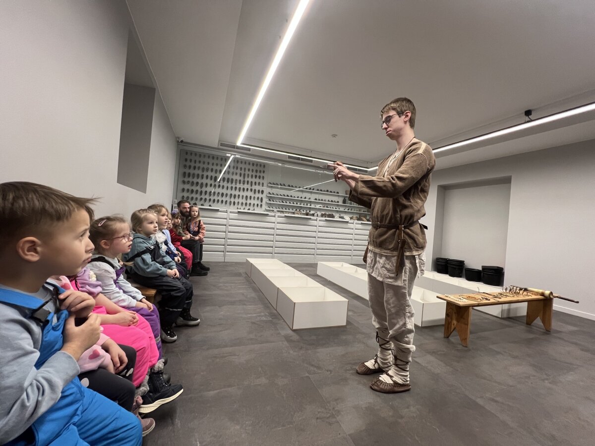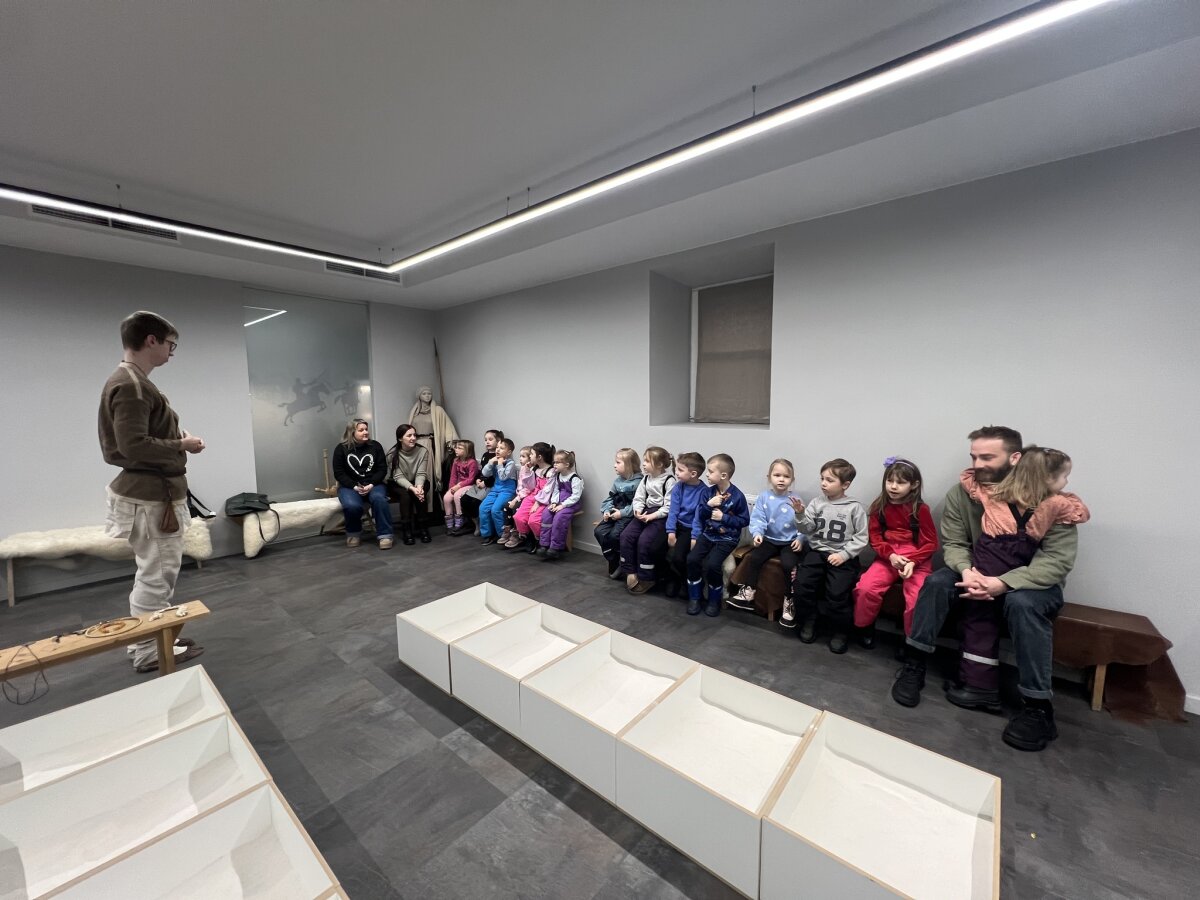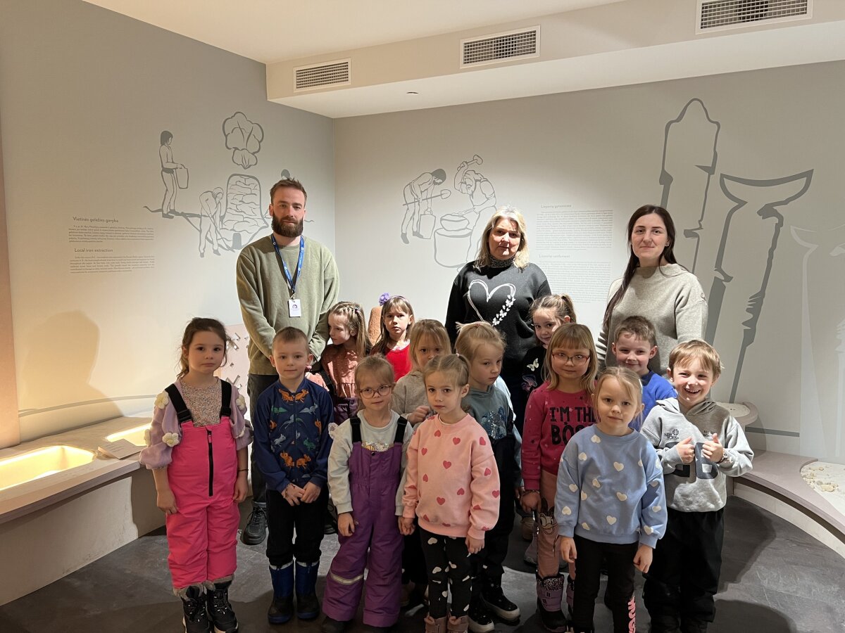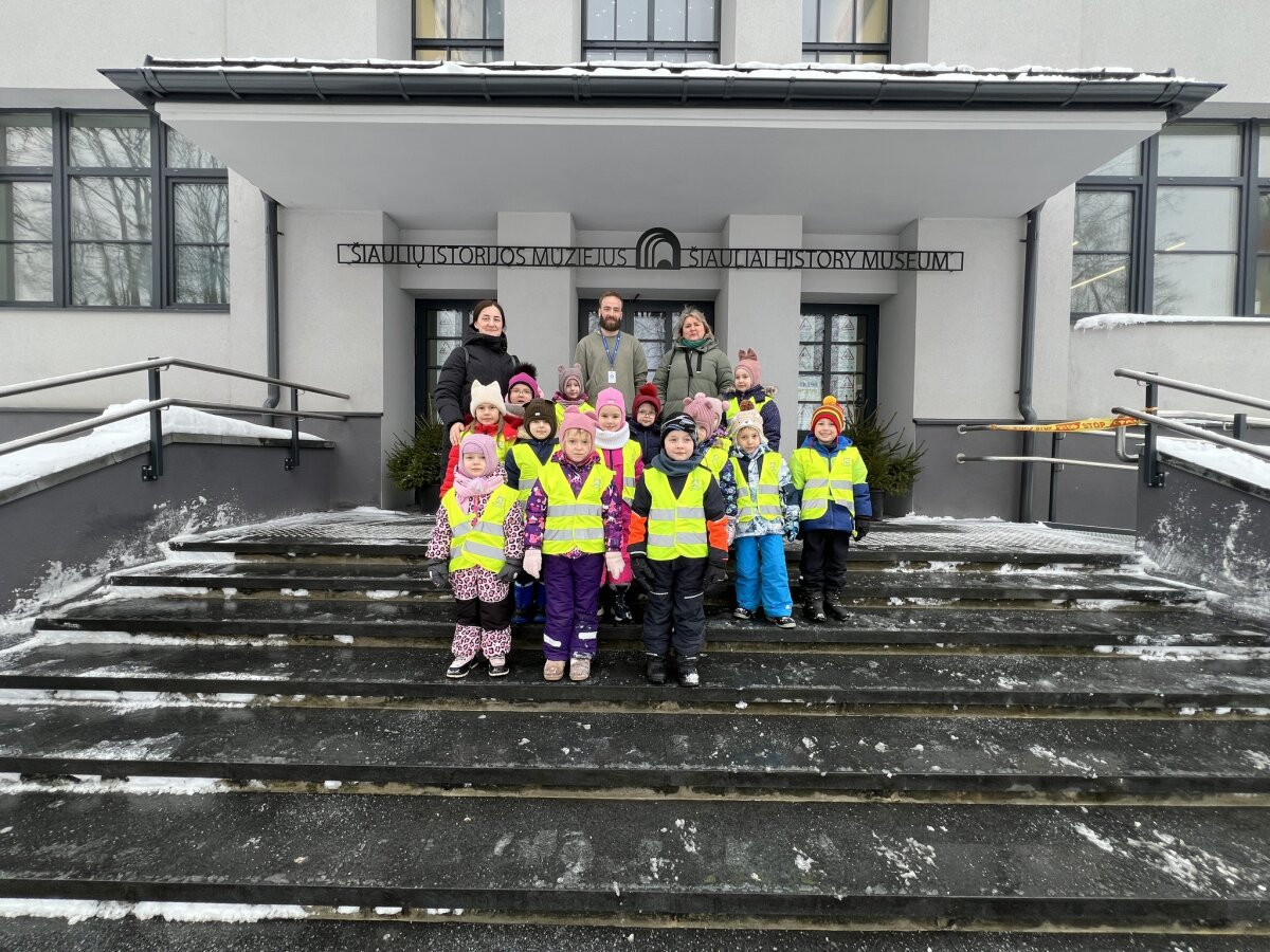 Šių metų vasario 24 d. mūsų darželio „Drugelių“ grupė lankėsi Šiaulių istorijos muziejuje, kuriame dirba vienos mūsų grupės mergaitės Otilijos tėtis Justinas. Atvykus į muziejų, jis mus pasitiko ir pakvietė į vidų, kur išsamiai papasakojo apie savo darbą bei pristatė muziejininko – rinkinio saugotojo – profesiją.Sužinojome, kad muziejininko darbas yra labai atsakingas ir įvairiapusiškas: jis rūpinasi muziejinių vertybių rinkimu, jų apskaita, vertės nustatymu, saugojimu, taip pat eksponatų paruošimu ekspozicijoms ar perdavimu kitiems muziejams bei padaliniams. Po trumpo pasakojimo Justinas mus palydėjo į apatinį aukštą, kur susipažinome su pirmąja Šiaulių istorijos muziejaus ekspozicijos dalimi. Ji pristato Šiaulių krašto raidą nuo pirmųjų gyventojų po ledynmečio iki XV amžiaus. Vaikai pamatė paleolito, neolito, bronzos ir geležies amžių radinius, sužinojo apie senovės žmonių buitį, žiemgalių ir žemaičių kultūrą. Vėliau dalyvavome labai įdomioje edukacijoje „Archeologinis kostiumas ir virvučių vijimas akmenukais“, kurią vedė edukatorius Margirdas. Išklausę pasakojimą, visi turėjome galimybę patys išbandyti senovinį amatą – ant spalvotų siūlų suvertų akmenukų pagalba nusipynėme draugystės apyrankes. Po edukacijos dar spėjome apsilankyti antrajame muziejaus aukšte, kuriame pristatoma antroji ekspozicijos dalis, skirta laikotarpiui nuo XV amžiaus iki Pirmojo pasaulinio karo (1918 m.). Apžvelgę ekspoziciją ir dar turėdami šiek tiek laiko, aplankėme ir trečią aukštą, kuriame įrengta atvirų saugyklų ekspozicija. Joje pristatomas muziejaus „Aukso fondas“ – svarbiausios etnografijos ir dailės vertybės: sakralinis ir taikomasis lietuvių liaudies menas, kunigo ir skulptoriaus Antano Rimavičiaus kūriniai, šventųjų atvaizdai keramika, tekstilė, tautiniai drabužiai bei kiti istoriniai eksponatai. Nuoširdžiai dėkojame Otilijos tėveliui už įdomų ir informatyvų profesijos pristatymą, edukacijos organizavimą bei pažintį su muziejumi. Ši išvyka praturtino mūsų kasdienybę ir paliko daug gražių įspūdžių!