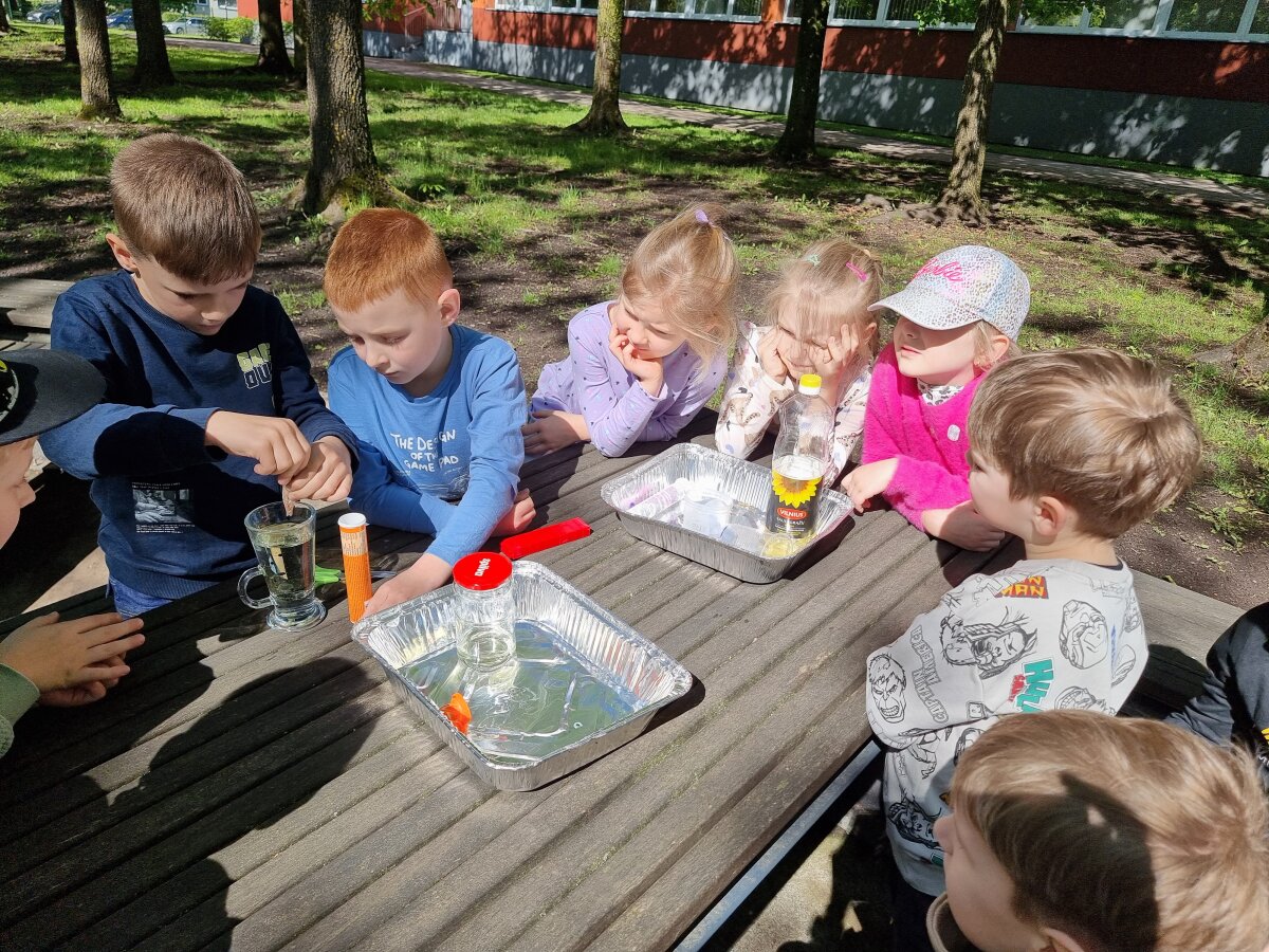Gegužės 20 dieną priešmokyklinio ugdymo grupės „Ančiukai“ vaikai dalyvavo Dainų progimnazijos 1PUG klasės organizuojamoje STEAM veikloje „Mažųjų akademija“. Veiklos pradžioje mažieji stebėjo eksperimentą, kuriame actas ir soda padėjo pripūsti balioną. Vėliau, pasiskirstę į komandas, jie atliko įvairius bandymus ir eksperimentus: su magnetu ieškojo smėlyje paslėptų monetų, bandė paridenti skardinę įelektrintu balionu, distiliavo nešvarų vandenį, iešmeliu perdūrė pilną vandens maišelį, stebėdami, ar iš jo tekės vanduo, tyrinėjo, kaip susidaro lavos burbuliukai, ir bandė pastatyti aukščiausią bokštą. Vaikų susidomėjimas, šypsenos ir juokas puikiai parodė, kad STEAM veikla buvo ne tik įdomi, bet ir įtraukianti!