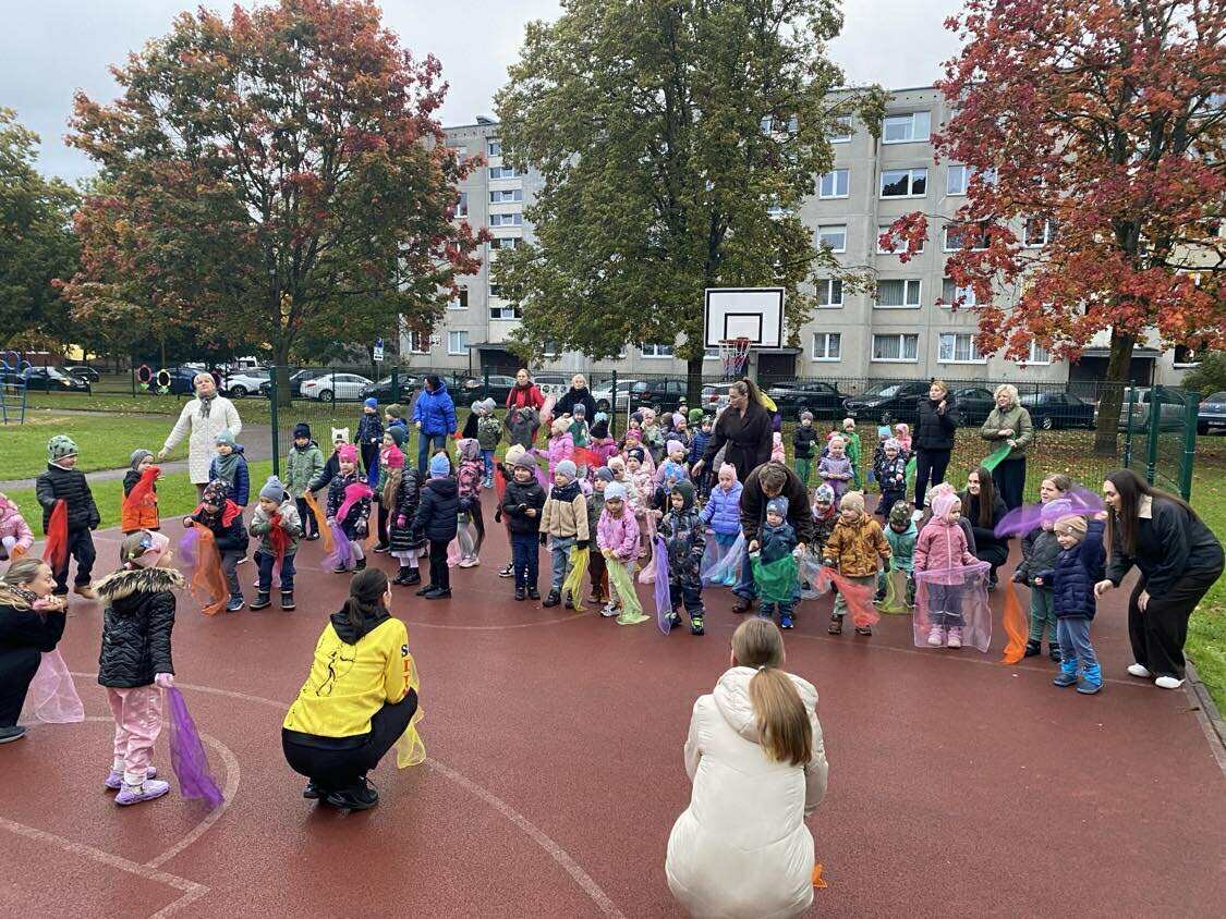 Įgyvendinant programos „Olimpinė karta“ finansuojamą projektą „Mažais žingsneliais į didįjį sportą“, visą spalio mėnesį kiekvieną penktadienį mūsų darželyje vyksta rytinės mankštelės lauke. Fizinio ugdymo mokytoja Rimutė ir meninio ugdymo mokytoja Giedrė kviečia vaikus linksmai ir energingai pajudėti, derinant sportą su muzika. Šio penktadienio rytą darželio kiemas buvo nuspalvintas vaikų šypsenomis ir įvairiaspalvėmis skarelėmis, su kuriomis mažieji noriai sportavo, šoko ir mėgavosi judėjimo džiaugsmu gryname ore. Rytinė mankšta tapo ne tik smagia pramoga, bet ir puikiu būdu pradėti dieną aktyviai, su gera nuotaika ir bendrystės jausmu.