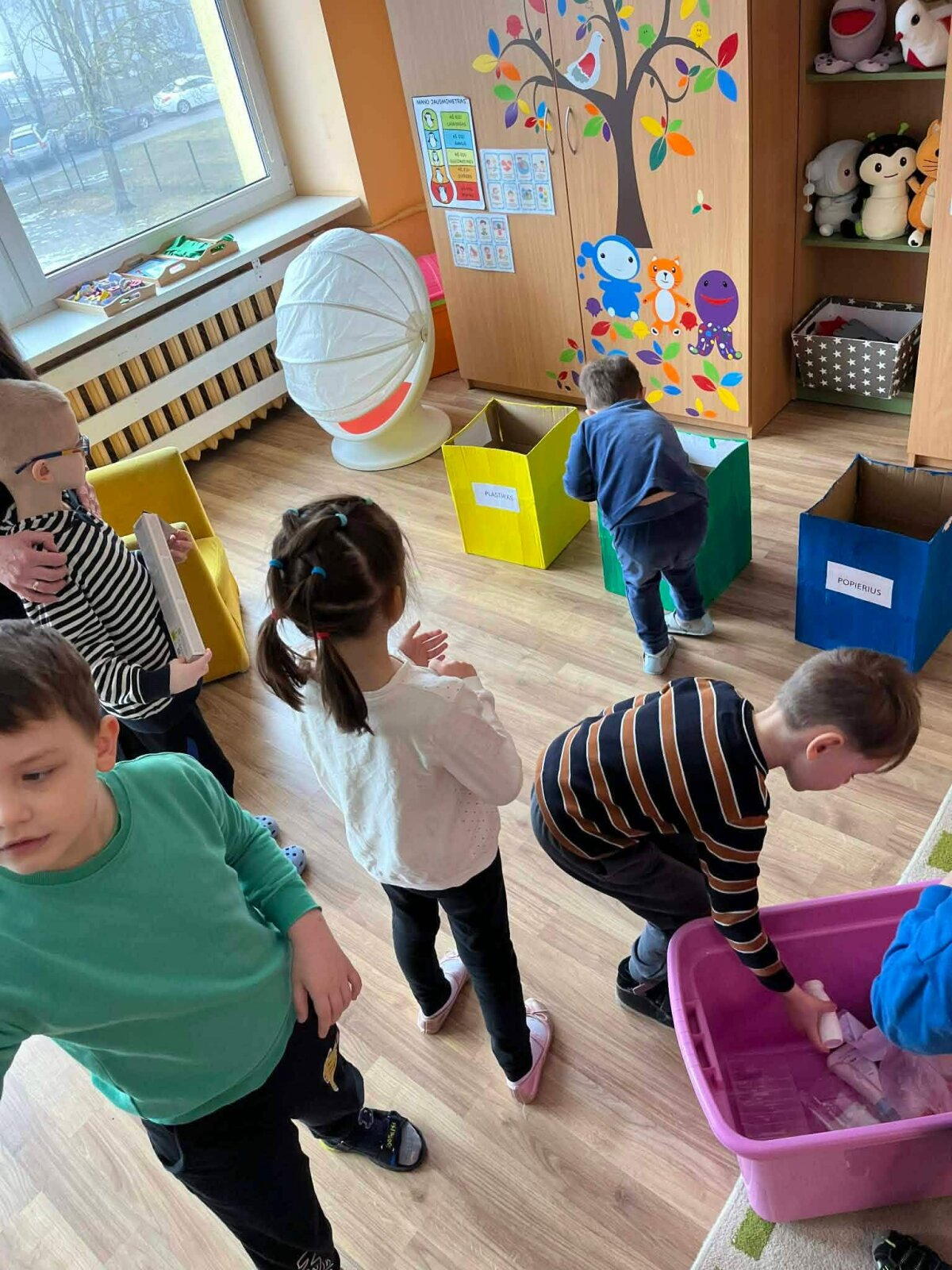 „Boružėlių“ grupėje vyko integruota STEAM veikla „Žemė – mūsų namai“. Veiklos metu vaikai kartu tyrinėjo ir kalbėjosi apie mūsų planetą – kas yra Žemė, kas joje gyvena ir kodėl svarbu ją saugoti. Smalsiai tyrinėdami gaublį ugdytiniai aptarė Žemės rutulio formą ir pagrindines spalvas, ieškojo žemynų bei vandens telkinių, įvardijo žmones, gyvūnus ir augalus, gyvenančius mūsų planetoje. Kartu su logopede Rasa vaikai atliko artikuliacinio aparato mankštelę, žaidė girdimojo suvokimo lavinimo žaidimus. Šios veiklos padėjo lavinti kalbinius gebėjimus, klausymo įgūdžius ir skatino vaikus drąsiau reikšti savo mintis. Grupėje taip pat buvo įrengtas atliekų rūšiavimo kampelis. Vaikai susipažino su atliekų rūšiavimo principais, mokėsi atpažinti rūšiavimo konteinerių spalvas ir kalbėjosi apie tai, kaip kiekvienas galime prisidėti prie švaresnės ir gražesnės aplinkos. Patirtinį mokymąsi papildė kūrybinės veiklos. Vaikai iš kamštelių dėliojo Žemės vaizdą, balionėlių antspaudais kūrė spalvingus darbelius. Ant magnetinė lentos dėliojo bei rašė žodžius „Žemė“, „Miškai“, „Upė“, „Jūra“ . Kurdami, tyrinėdami ir bendradarbiaudami vaikai patyrė pažinimo džiaugsmą, stiprino kūrybiškumą, lavino smulkiąją motoriką ir kalbinius gebėjimus. Ši veikla dar kartą priminė, kad Žemė yra mūsų visų namai, kuriuos turime saugoti, mylėti ir puoselėti. Veiklą organizavo mokytoja Rita Kušleikienė ir logopedė, specialioji pedagogė Rasa Šemetienė.