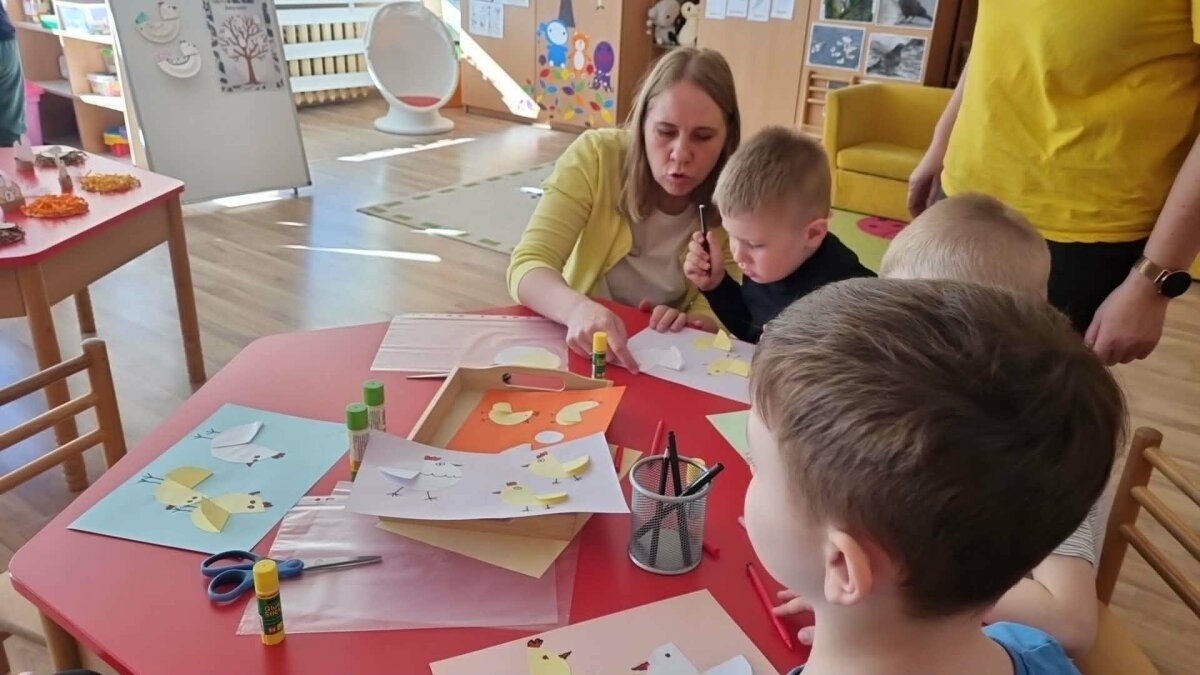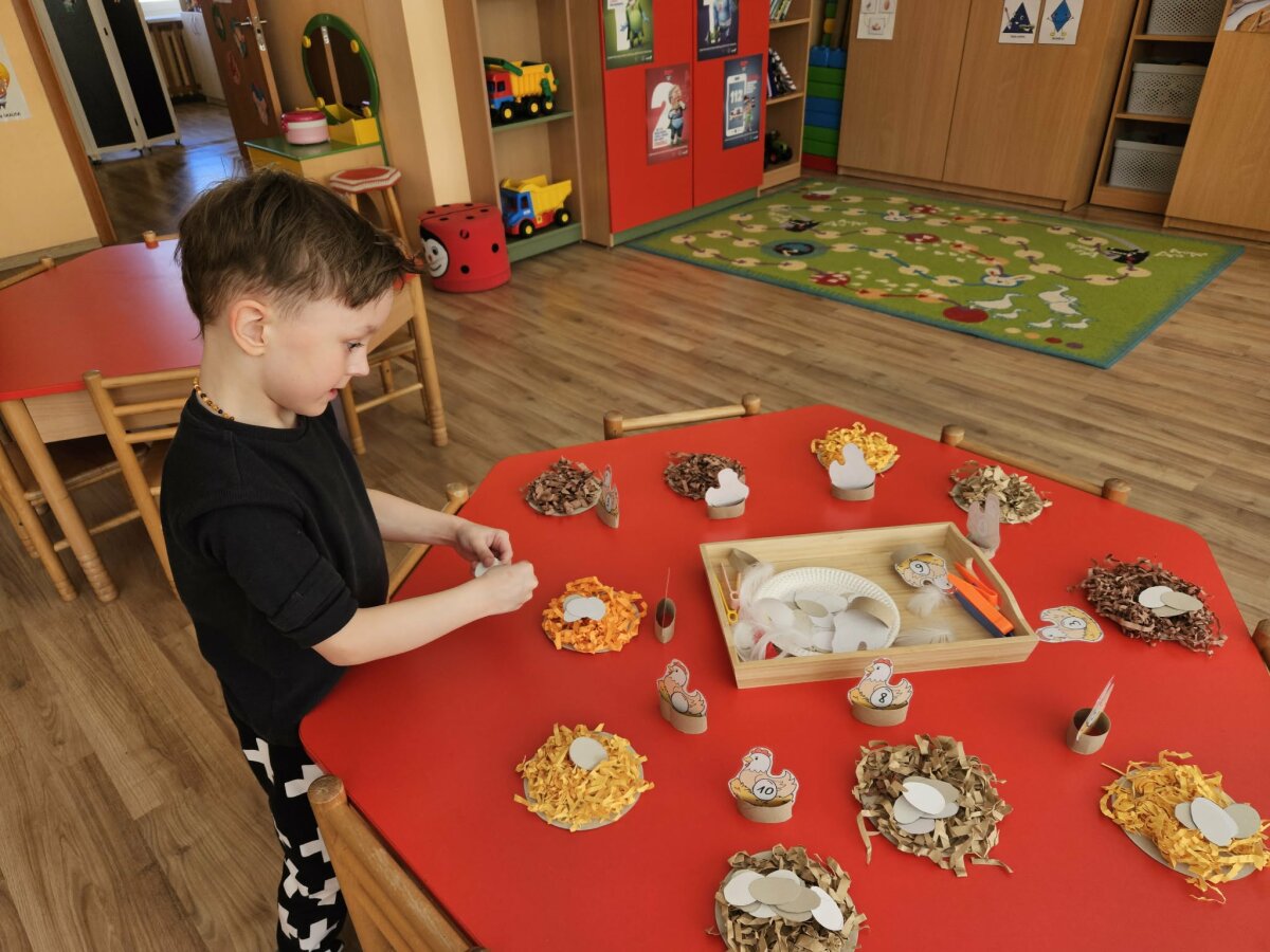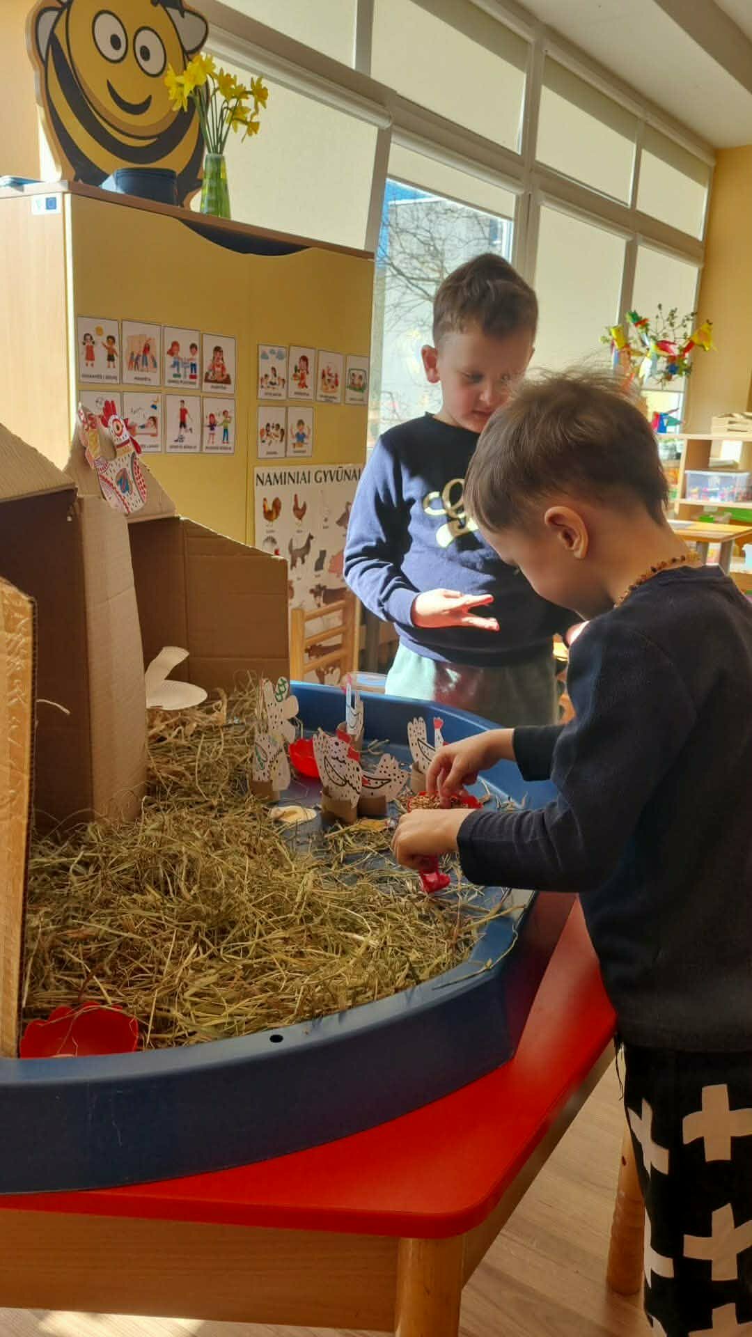 Balandžio 22 d. grupėje „Boružėlės“ vyko integruota ugdomoji veikla „Paukščių karalystėje. Vištidėje...“, kurią vedė ikimokyklinio ugdymo mokytoja Rasa Gudmonienė ir logopedė, specialioji pedagogė Rasa Šemetienė. Mokytoja Rasa G. supažindino ugdytinius su naminių paukščių šeimos rūšimi – vištomis. Vaikai sužinojo apie šių paukščių įvairovę, išvaizdą, gyvenimo sąlygas bei jų teikiamą naudą žmogui. Padedami logopedės Rasos Š., ugdytiniai kūrė rišlų pasakojimą apie gyvenimą ūkyje, lavino artikuliacinį aparatą, taisyklingą žodžių tarimą, mokėsi vartoti prielinksnius ir plėtė savo žodyną. Grupės erdvėje įrengtos edukacinės aplinkos skatino vaikus tyrinėti, kurti ir mokytis. Ugdytiniai lavino matematinį mąstymą, kalbinius gebėjimus, kūrybiškumą, bendradarbiavimo bei problemų sprendimo įgūdžius. Naudodami natūralias medžiagas, vaikai įrenginėjo vištidę. Mažieji skaičiavo ir dėliojo į lizdus nurodytą skaičių kiaušinių. Vaikai taip pat lavino raidžių pažinimą ir jų jungimą į žodžius – iš pateiktų raidžių dėliojo su tema susijusius žodžius. Atlikdami kūrybinę užduotį, ugdytiniai tobulino kirpimo žirklėmis įgūdžius, mokėsi atpažinti geometrines figūras ir iš jų kūrė nuotaikingas viščiukų aplikacijas. Kurdami, tyrinėdami, veikdami ir bendradarbiaudami vaikai patyrė pažinimo džiaugsmą, stiprino matematinį mąstymą, lavino kūrybiškumą, smulkiąją motoriką bei kalbinius gebėjimus.