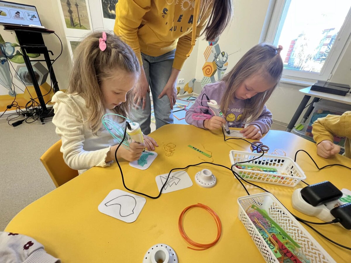 2026 m. balandžio 20 d. „Drugelių“ grupės ugdytiniai lankėsi lopšelyje-darželyje „Eglutė“, dalyvavo STEAM veikloje „Aš išmanusis kūrėjas“. Veiklos pradžioje vaikai kartu su centro mokytojomis aptarėįvairių profesijų - rašytojo, dailininko, muzikanto, inžinieriaus, aktoriaus ir keramiko - veiklą. Jie išsiaiškino, kad kiekvienas kuria skirtingais būdais, o kūrybiškumas gali pasireikšti įvairiose srityse. Susipažinę su Lietuvos dailininko ir kompozitoriaus M. K. Čiurlionio kūryba, vaikai paveiksluose ieškojo paslėptų geometrinių figūrų. Po to buvo kviečiami skambant kūriniui „Miške“, sukurti paveikslą „Miško pasaka“, pasitelkiant braižymo techniką. Inžinerinėje veikloje vaikai eksperimentavo su popieriniais vamzdeliais, juos jungė varžtais ir veržlėmis, konstruodami tvirtas geometrines formas. Taip pat susipažino su 3D rašiklio galimybėmis ir kūrė trimatį gaminį. Technologijų srityje vaikai programavo robotą „Bee-Bot“, prie kurio buvo pritvirtintas flomasteris, ir taip kūrė bendrą piešinį. Kūrybinėje veikloje piešė flomasteriais ant keramikinių šaukštų – panardinus juos į vandenį, piešiniai atsiskyrė ir plūduriavo paviršiuje. STEAM veikla „Aš išmanusis kūrėjas“ skatino vaikų mokymąsi per patirtį – tyrinėjant, eksperimentuojant, kuriant ir programuojant. Kūrybinis procesas ugdė jų smalsumą, kūrybiškumą ir džiaugsmą atrasti. Į darželį vaikai grįžo kupini puikių emocijų.