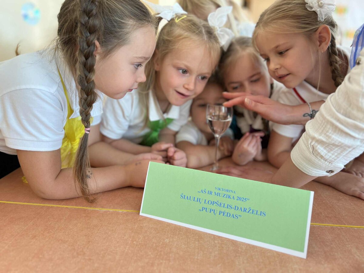Spalio 1-oji, Pasaulinė muzikos diena, Šiaulių lopšelių-darželių buvo paminėta ypač skambiai ir išradingai! Šiaulių l/d „Rugiagėlė“ ir „Dainelė“ kartu surengė mikrorajono dainų viktoriną „Aš ir muzika 2025“, kurios metu ikimokyklinukai demonstravo savo muzikalumą, ritmo pojūtį ir komandinę dvasią. Renginys vyko svetingoje Šiaulių l/d „Dainelė“ aplinkoje. Jame dalyvavo ikimokyklinio ugdymo grupių komandos iš kaimyninių darželių, o mūsų darželio garbę gynė šešios šaunios „Drugelių" grupės mergaitės! Mūsų komanda viktorinai ruošėsi itin atsakingai. „Pupų pėdo“ mergaitės ne tik gilino savo žinias apie garsus ir muziką, bet ir paruošė įsimintiną prisistatymą, kuris užbūrė visus susirinkusius. Mergaitės prisistatė nuotaikingu šūkiu ir muzikiniu ritminiu pasirodymu. Viktorinos metu vaikai sprendė įvairias muzikines užduotis: atpažino dainų ištraukas, atsakė į klausimus apie instrumentus, dekoravo nateles, išbandė vandens muziką su taurėmis, dainavo, ritmavo, o renginio pabaigai vedėjai pakvietė vaikus bendram šokiui. Visur tvyrojo nuostabi nuotaika, o kiekvienas dalyvis namo grįžo su padėka, pasisėmęs geros energijos ir patyręs bendravimo per muziką džiaugsmą.