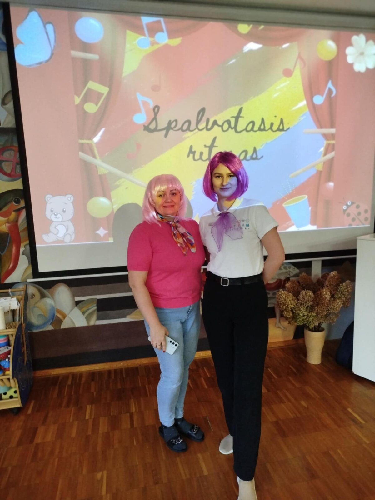 Lapkričio 26 d. muzikos salėje vyko spalvų ir ritmų šventė – vaikų saviraiškos renginys „Spalvotasis ritmas“. Šioje šventėje dalyvavo „Boružėlių", „Drugelių, „Meškučių" ir „Gėlyčių" grupių vaikai, kurie atskleidė savo muzikinį talentą ir komandinio darbo įgūdžius. Renginio esmė – paversti kiekvieną spalvą unikaliu garsiniu patyrimu. Vaikai, naudodami įvairias ritmines priemones, sukūrė keturias skirtingas menines kompozicijas. Linksmosios „Boružėlės" atstovavo raudonąjį ritmą, nešinos raudonais kamuoliukais, pademonstravo žaismingą, taškuotą ir energingą ritmą. „Drugelių" grupės vaikai sceną pripildė mėlynuoju ritmu. Naudodami medines lazdeles ir kėdučių atlošus, išpildė švelnių ir subtilių garsų dermę. „Meškučių" grupės vaikai atliko rudąjį ritmą, kuriame parodė, kaip galime ritmuoti kartu su savo draugu. Pagal nuotaikingą „Letkio“ muziką vaikai naudojo judesių ir kūno perkusijos elementus, o geltonosios „Gėlytės" sužydėjo ant scenos, atlikdamos šviesų, dainuojantį ritmą su ritminiais puodeliais. Renginio finale vedėja pakvietė visas grupes atlikti bendrą kūrinį. Visi vaikai susivienijo ir atliko kūno perkusijos kompoziciją pagal populiarią dainą („Levitating“ perkusijos versija) naudodami savo kūnus kaip instrumentus – vaikai pagal spalvas plojo, trepsėjo, pliauškėjo, spragsėjo. Pabaigoje vedėja padėkojo dalyviams, mokytojoms ir visiems tikintiems muzikos galia, palinkėdama: „Tegu ritmas ir spalvos lydi Jus kiekvieną dieną. Iki kitų susitikimų!”.