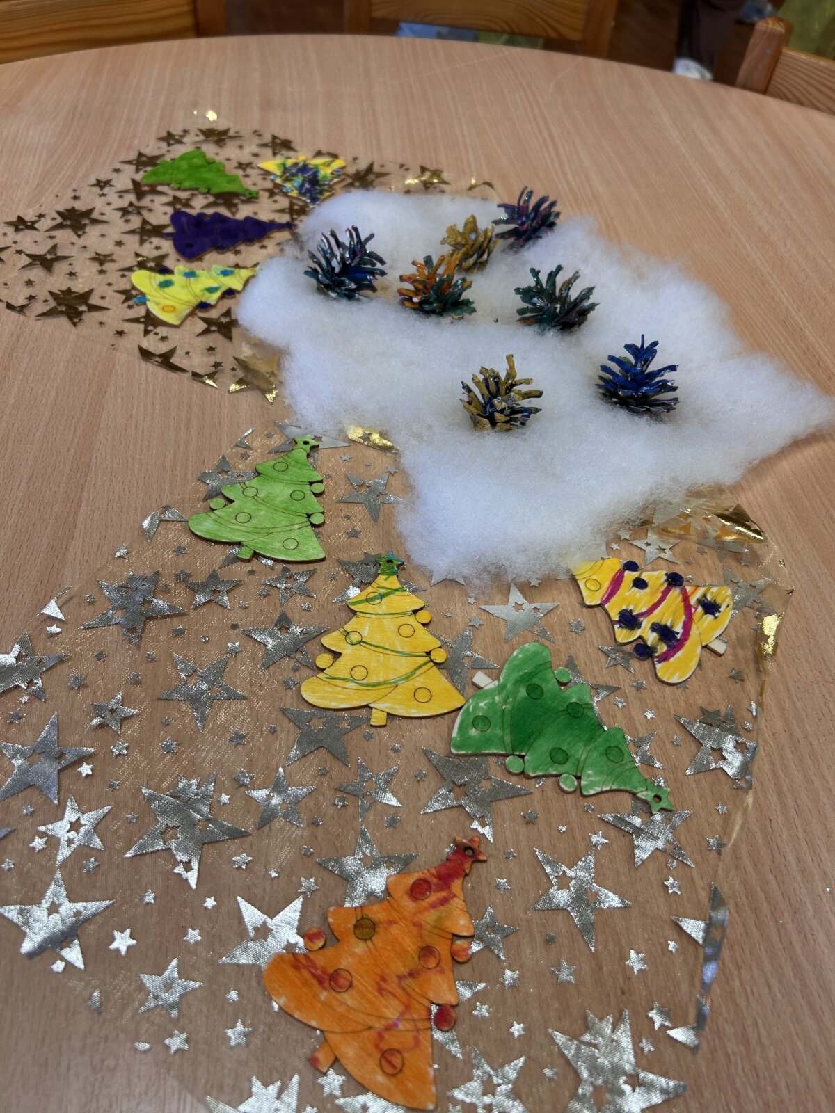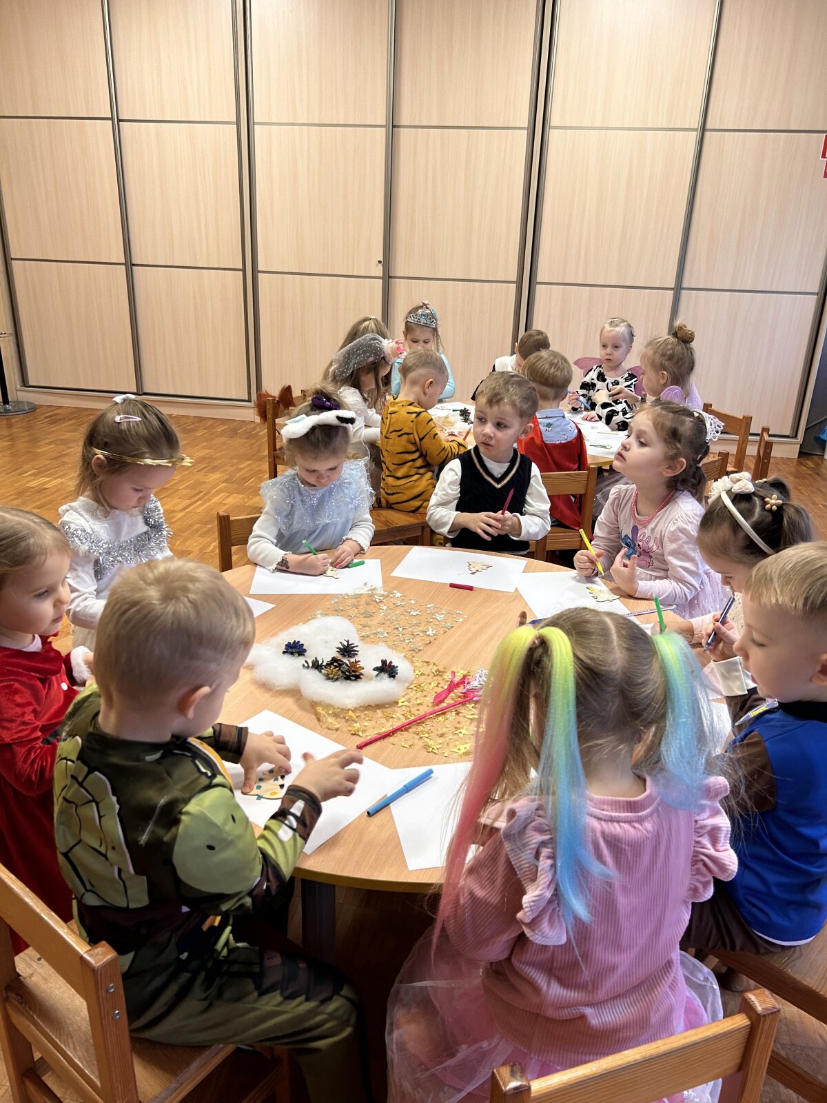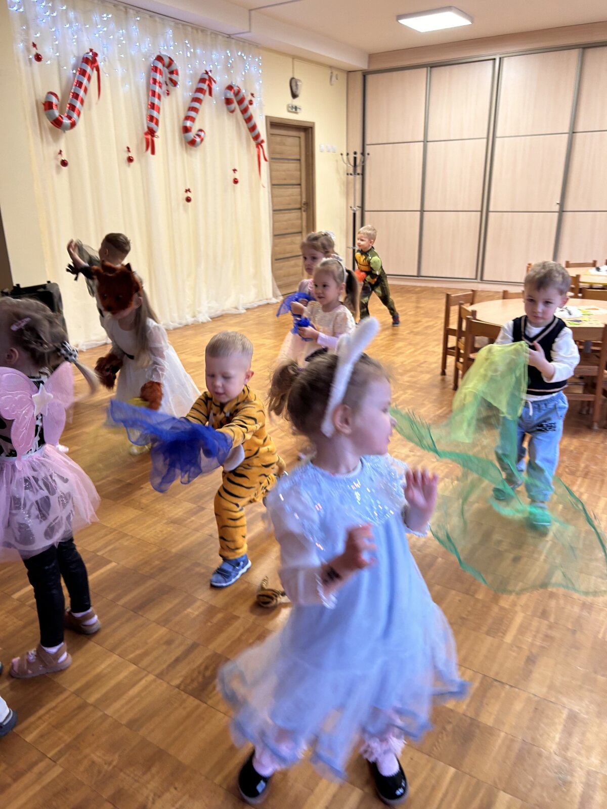 „Kiškučių“ grupėje šurmuliavo tikras Kalėdinis karnavalas! Mažieji „Kiškučiai“, pasipuošę šventiniais kostiumais, kibo į kūrybinius darbus – su meile ir kruopštumu puošė medines eglutes, kurios tapo pagrindiniu šventiniu grupės akcentu. Šventės metu netrūko vaikiško juoko ir energijos: vaikai sukosi rateliuose, šoko smagius šokius ir dainavo daineles, skirtas artėjančioms šventėms. Didžiausia intriga ir jaudulys buvo Kalėdų Senelio laukimas. Nors Kalėdų Senelis paslapčiomis paliko dovanas grupėje, vaikų džiaugsmas jas radus buvo begalinis. Ši diena buvo kupina stebuklų, bendrystės ir tikro kalėdinio laukimo džiaugsmo!