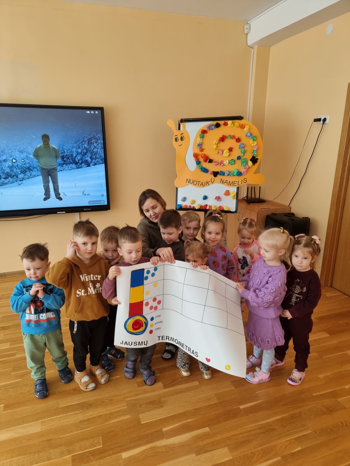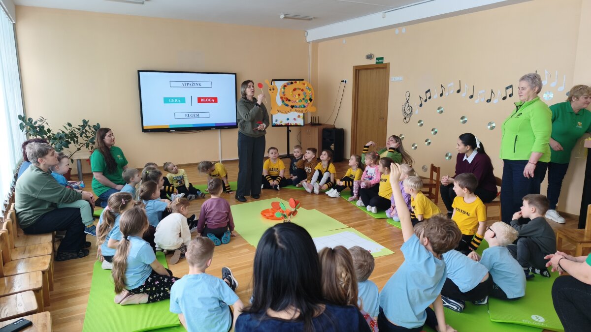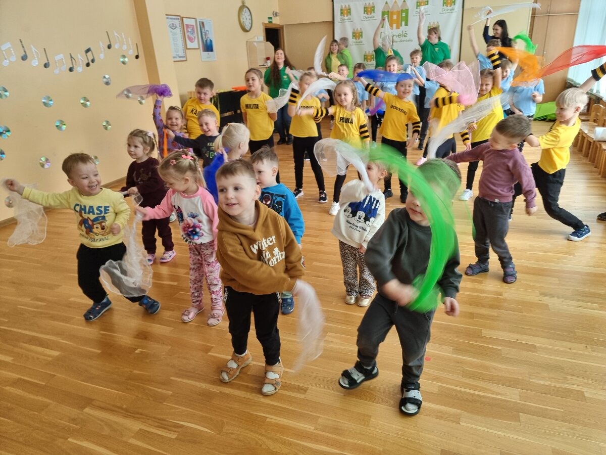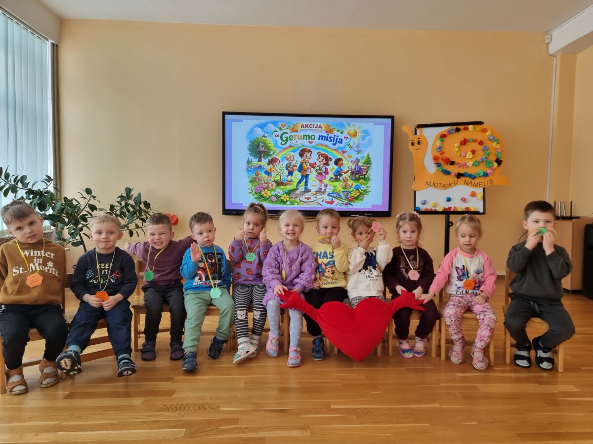 Vasario 19 dieną „Ančiukų“ grupės vaikai kartu su mokytoja Vida leidosi į prasmingą išvyką į lopšelį-darželį „Dainelė“, kur vyko graži ir šilta akcija vaikams „Gerumo misija“. Ši iniciatyva subūrė gausų būrį vaikų ir mokytojų bendram tikslui – dalintis gerumu, stiprinti tarpusavio ryšį ir mokytis suprasti vieniems kitus. Akcija prasidėjo simbolišku širdelės „keliavimu“ iš rankų į rankas, sakant vieni kitiems gražius žodžius. Šis paprastas, tačiau labai prasmingas gestas padėjo pajusti nuoširdaus žodžio ir dėmesio svarbą. Vaikai suprato, kad net mažas komplimentas ar padrąsinimas gali pradžiuginti ir sušildyti širdį. Vėliau mažieji tapo tikrais jausmų detektyvais – mokėsi atpažinti džiaugsmą, liūdesį, pyktį, baimę bei dalijosi savo patirtimis. Kūrybinėje veikloje emocijas jie išreiškė spalvomis. Kurdami sraigės „Nuotaikų namelį“, vaikai suprato, kad visos emocijos yra svarbios ir reikalingos – kiekviena jų mums padeda geriau pažinti save. Aptardami įvairias situacijas, vaikai mokėsi atskirti tinkamą ir netinkamą elgesį. Savo sprendimus jie vertino žalios ir raudonos spalvų lazdelėmis. Taip pat sukūrė savijautos termometrą, kuris padės kasdien geriau atpažinti, įvardyti ir suprasti savo jausmus. Akciją užbaigė bendras šokis su spalvingomis skarelėmis ir pažadas dažniau sakyti gerus žodžius, padėti, išklausyti ir būti dėmesingiems vieni kitiems. Juk gerumas prasideda nuo mažų dalykų – nuo šypsenos, švelnaus žodžio ar ištiestos pagalbos rankos. O ugdydami šias vertybes nuo mažens, kuriame šiltesnę ir draugiškesnę bendruomenę.