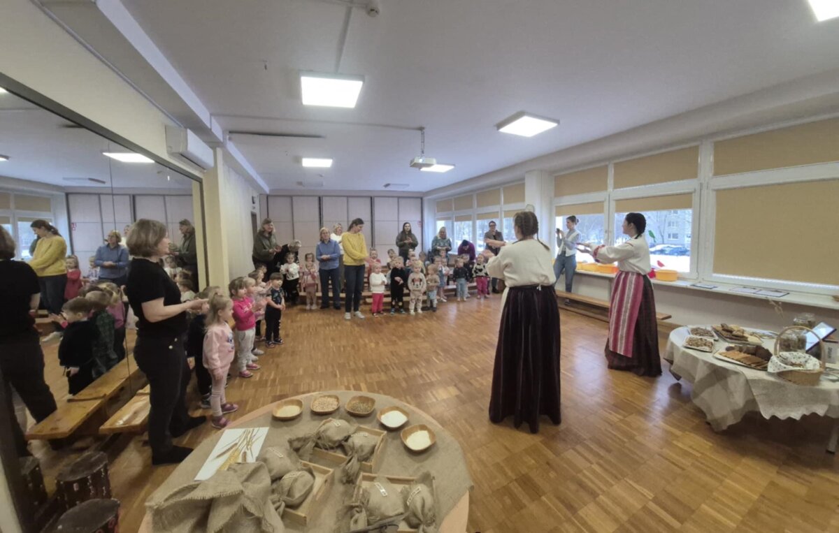 Vasario 5-ąją minima Šv. Agotos diena, dar vadinama Duonos diena. Nuo senų laikų duona buvo laikoma ne tik pagrindiniu maisto produktu, bet ir svarbiu gyvenimo simboliu. Tikėta, kad šią dieną pašventinta duona saugo namus nuo gaisrų, ligų ir nelaimių, o tą dieną pasėti rugiai ir kviečiai duos gerą derlių. Švęsdami Agotos dieną, mokytojos Simona ir Toma pakvietė vaikus į gaspadinės gryčią. Vaikai susipažino su duonos keliu nuo grūdelio iki duonos kepalėlio. Spėjo mįsles, ragavo gaspadinės iškeptos duonos ir duonos gėrimo „Duonutė“. Šoko, dainavo bei žaidė lietuvių liaudies žaidimus. Rytmečio pabaigoje gaspadinės paprašė vaikų atskirti grūdus nuo žirnių ir pupų, kad galėtų iškepti skanios duonos.