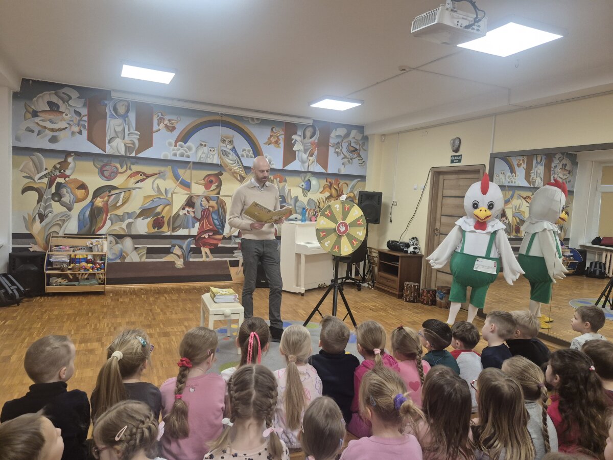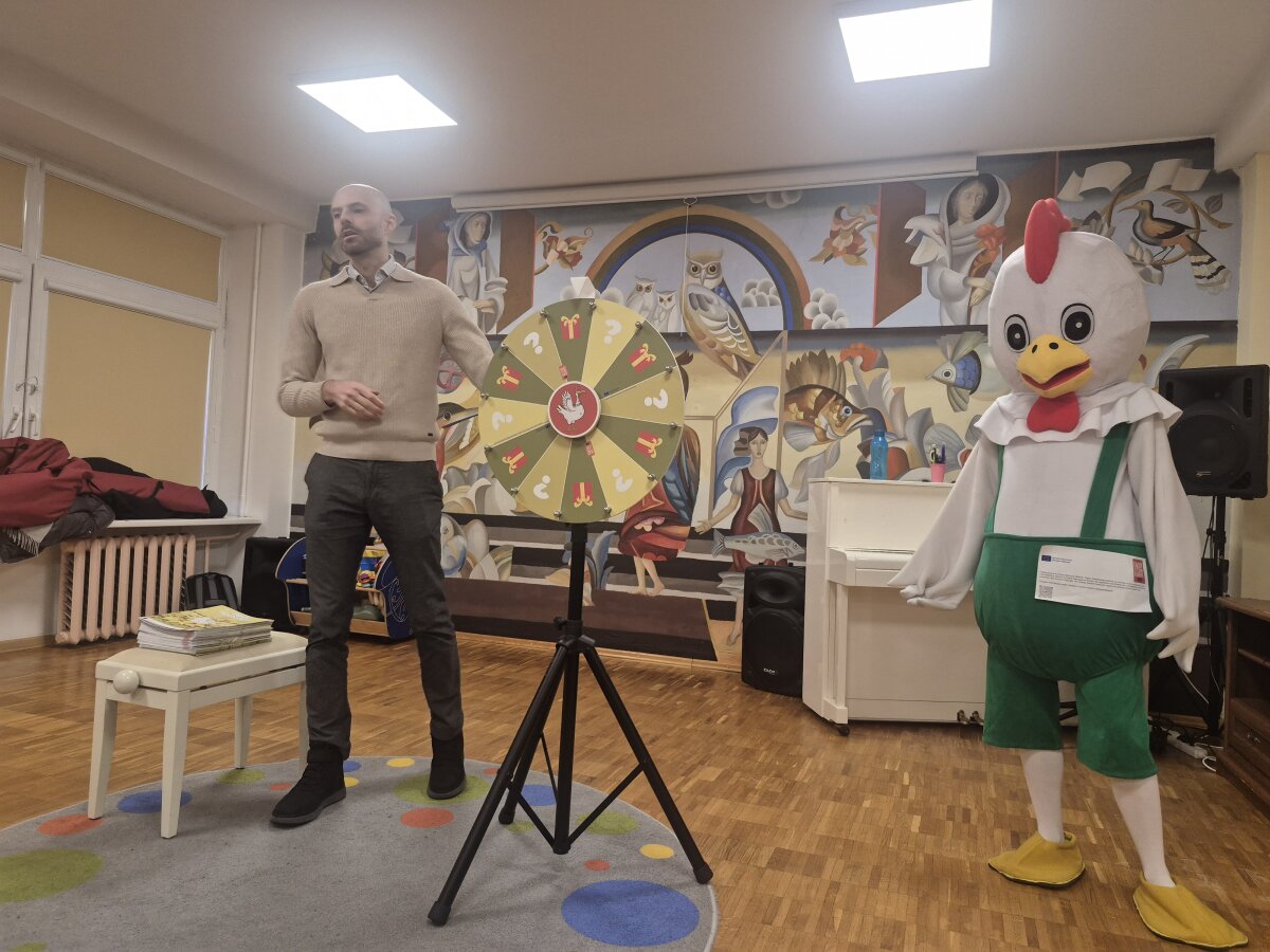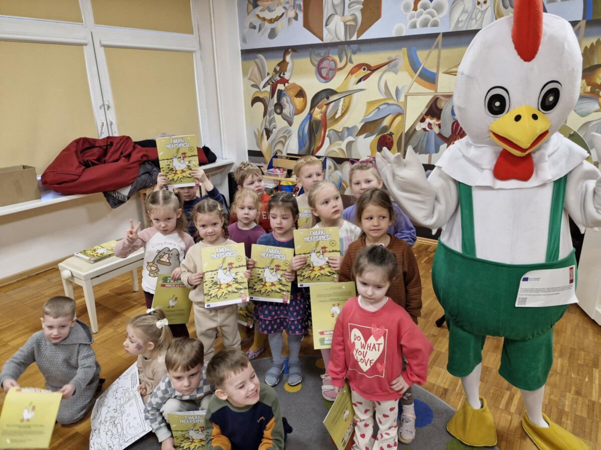 Šiandien, vasario 9 d. „Gėlyčių“, „Drugelių“ ir „Nykštukų“ gupių vaikučiai dalyvavo Europos sąjungos finansuojamoje edukacijoje „Žiūrėkite, ką valgote". Kartu su vedėju vaikus aplankė personažas viščiukas. Edukacijos metu vaikai sužinojo apie kokybišką vištieną, kaip atskirti parduotuvės lentynoje, kuri vištiena buvo užauginta be antibiotikų, kodėl ją valgyti sveika. Vaikai sužinojo daug įdomių faktų apie patį paukštį - vištą. Vėliau vaikai buvo kviečiami po vieną ateiti prie laimės rato, jį suko ir gavo projekto dovanėlę - spalvinimo knygelę. Kas išsuko klausimą - pats arba su draugų ir mokytojų pagalba turėjo atsakyti į klausimą ir buvo apdovanotas. Kai kam pasisekė dar labiau, jeigu išsuko dovanos paveiksliuką - dovaną gavo iš karto.