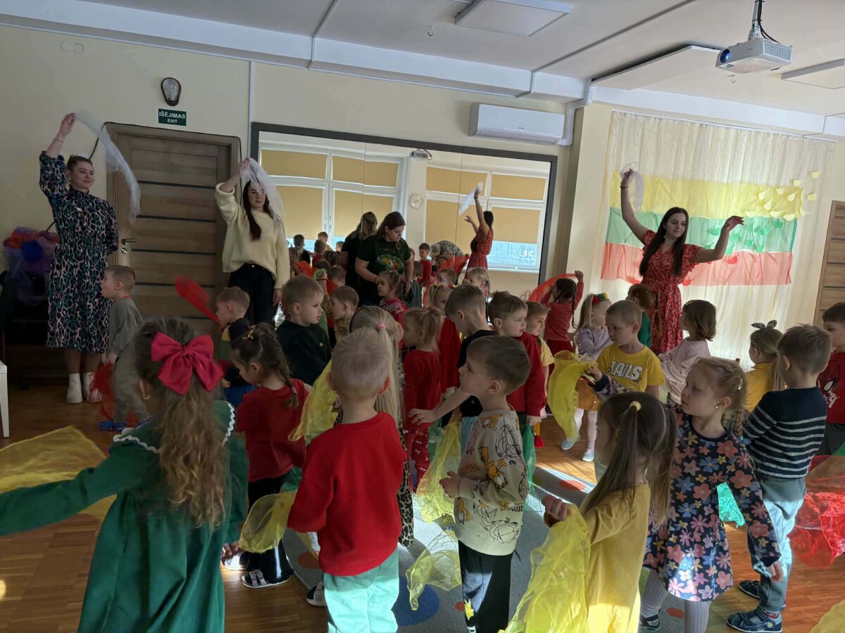 Kovo 6 d. mūsų darželyje vyko integruota veikla, skirta Kovo 11-osios paminėjimui. Joje dalyvavo „Nykštukų“ ir „Ežiukų“ grupių vaikai bei muzikos mokytoja. Šventę pradėjome iškilmingai sugiedodami Lietuvos himną. Vaikai klausėsi pasakojimo apie laisvą paukštelį - laisvės ir meilės tėvynei simbolį. „Ežiukų“ grupės vaikai padovanojo jautrų eilėraštį „Mano šalelė“, o muzikos mokytoja visus pradžiugino skambančiomis kanklių melodijomis, kurios sukūrė jaukią ir šventišką nuotaiką. Veiklos metu vaikai šoko su spalvotomis skarelėmis, patyrė daug džiaugsmo ir bendrystės. Jie kūrybiškai klijavo širdeles Lietuvai, taip lavindami smulkiąją motoriką, kūrybiškumą ir stiprindami meilę savo šaliai. Kartu sudainavome dainą „Nuspalvinsiu Lietuvą“. Šventę užbaigėme lauke - vaikai ant sniego nuspalvino didelę širdį Lietuvos vėliavos spalvomis. Ši veikla suteikė daug gerų emocijų ir dar labiau sustiprino vaikų pasididžiavimą savo šalimi.