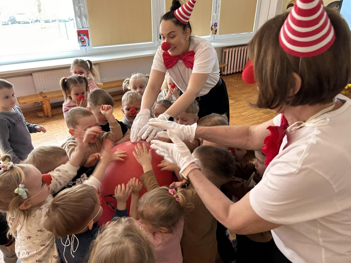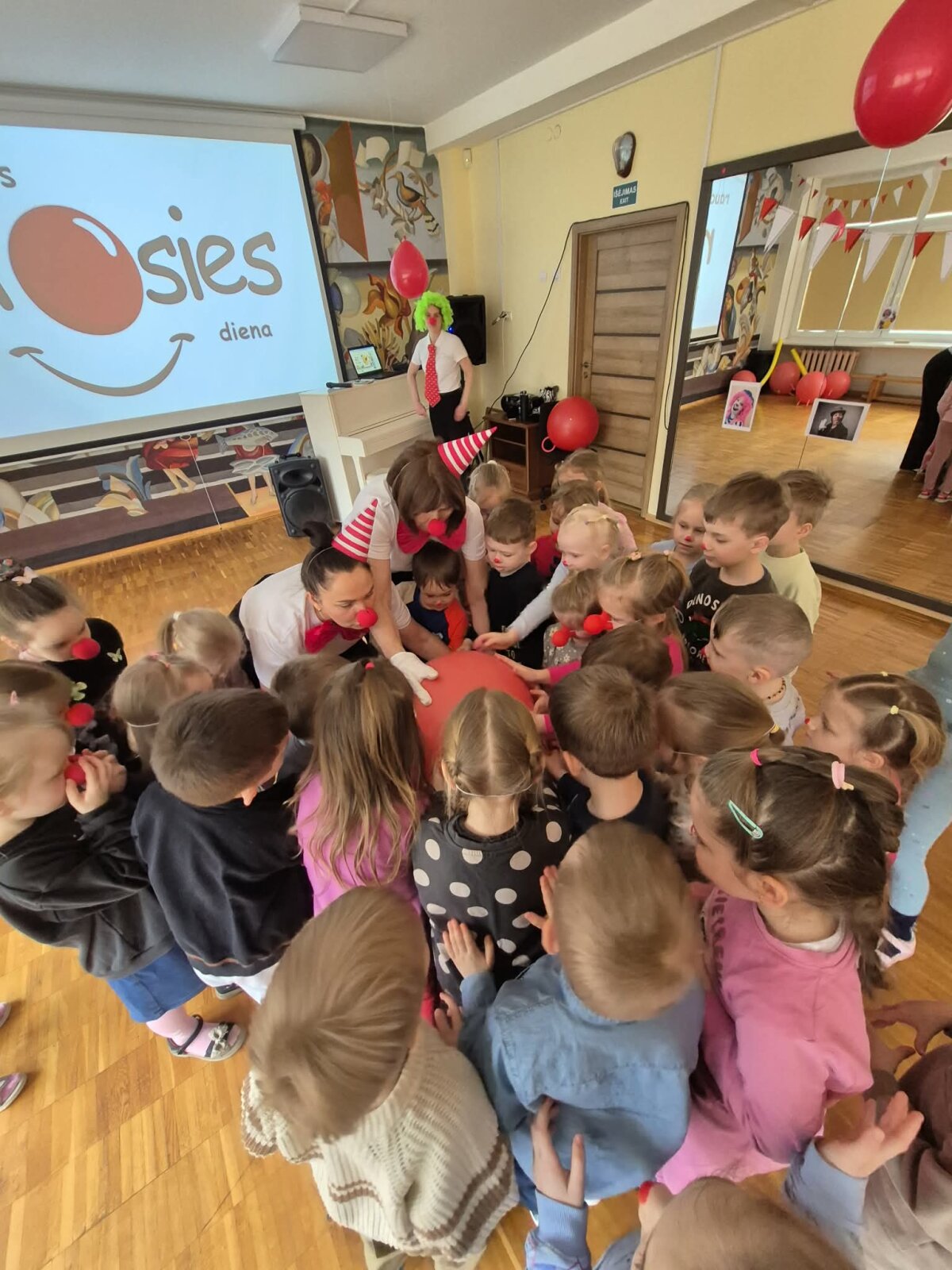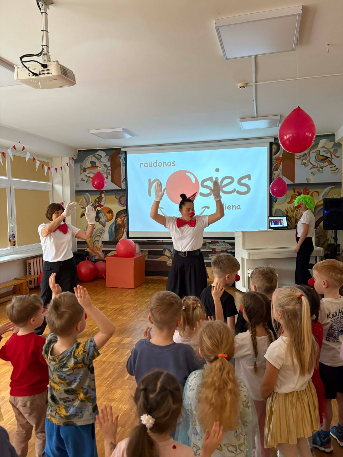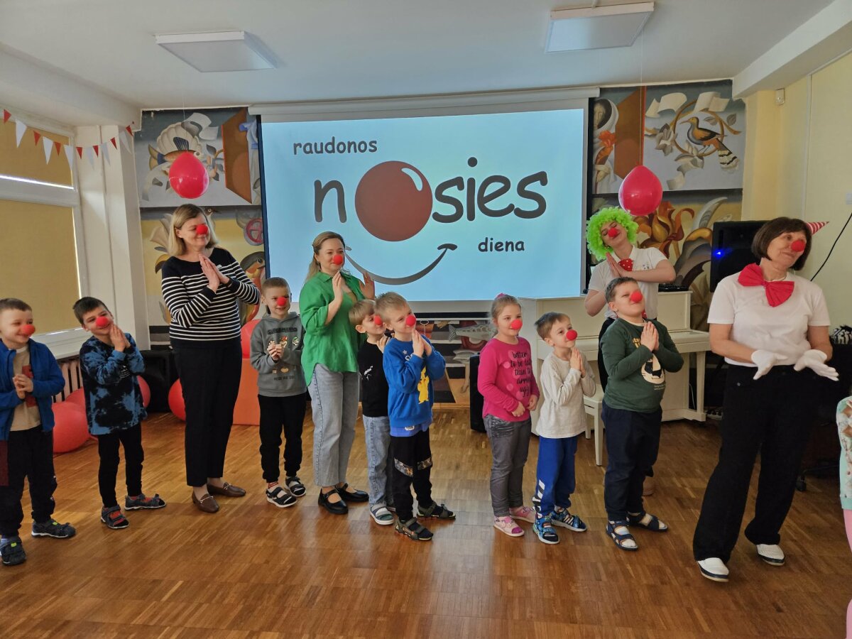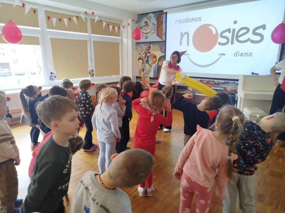 Kovo 18-tą, mūsų darželyje buvo minima, jau tradicine tapusi, „Radonos nosies“ diena. Šią dieną vaikai, pasipuošę raudonomis klounų nosimis ėjo linksmintis, kur salėje jau laukė du pašėlę klounai. Visų pirma, dėmesys buvo skiriamas prisiminti, kokiu tikslu minima ši diena. Ugdytiniai ir darželio bendruomenė apžvelgė vaizdo įrašą su geradarių klounų misija ligoninėje, o su klounu Augenijumi mokinosi, kaip tinkamai reikia šypsotis. Kiek vėliau mankštino juoko raumenis, vykdami įsivaizduojamu traukinuku per juoko stoteles, išdykavo su raudonais kamuoliukai – raudonomis nosimis. Renginio pabaigoje visi vaikai, uždėję ranką ant didelės raudonos nosies, prisiekė daug šypsotis, nes šypsena ir gera nuotaika gydo labiau nei vaistai.