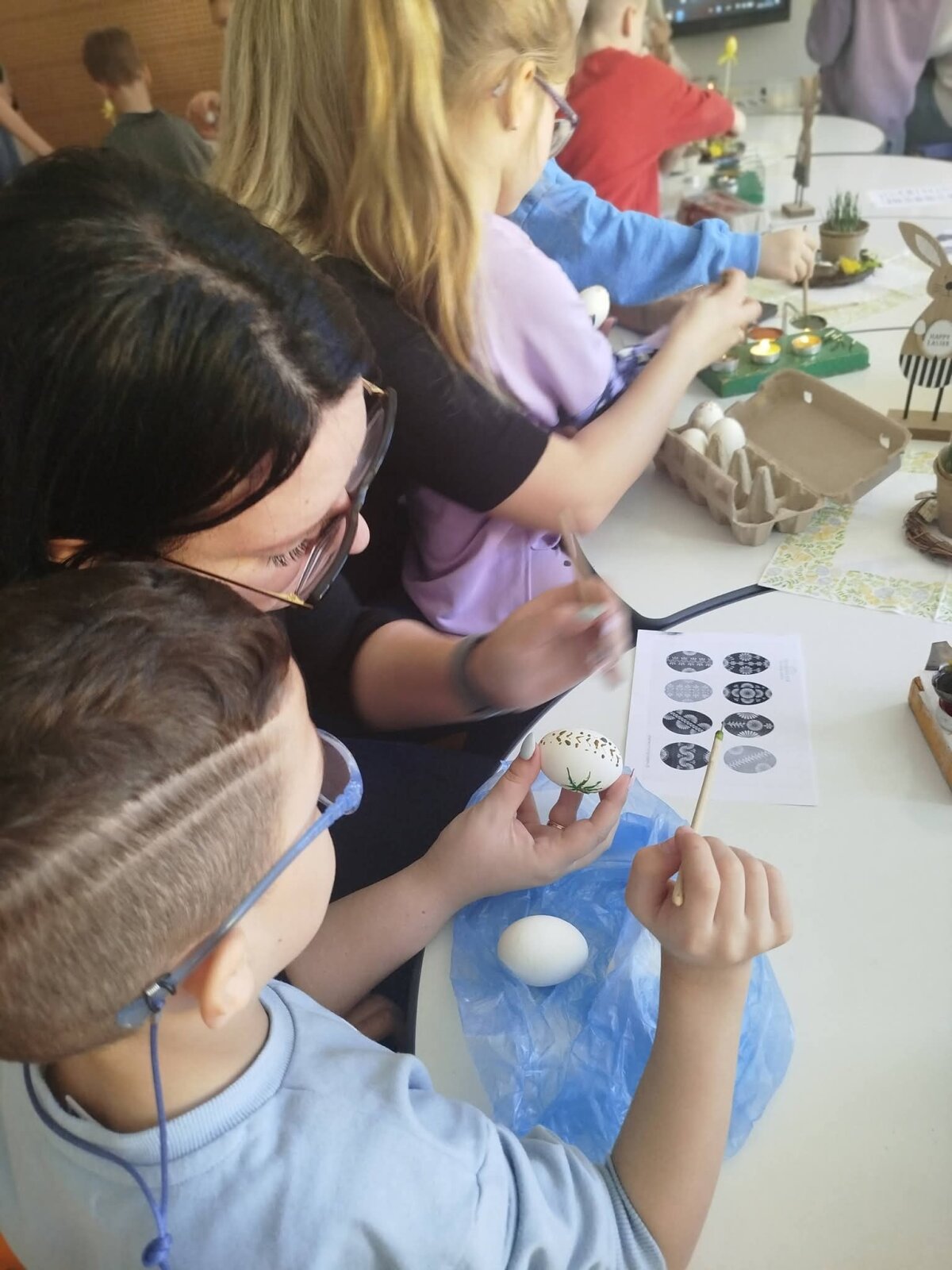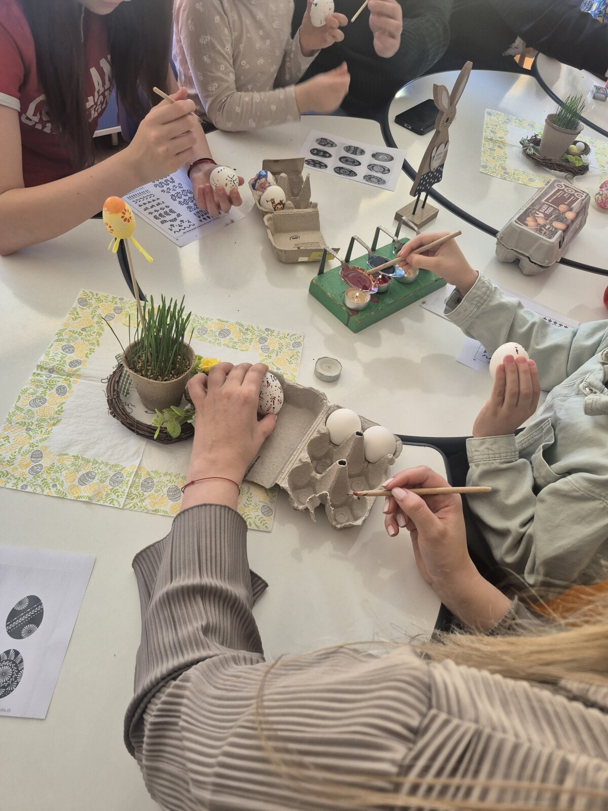 Balandžio 1 dieną „Gėlyčių" grupės mokytojos Dovilė ir Toma pakvietė vaikus ir tėvelius į jaukias Velykines dirbtuves „Margi margučiai“. Renginys subūrė bendruomenę prasmingam, kūrybiškam ir smagiam laikui kartu. Susirinkusieji pirmiausia dalyvavo nuotaikingoje „Kahoot“ viktorinoje, kurios metu pasitikrino žinias apie Velykų tradicijas, papročius ir simbolius. Vaikai ir tėveliai aktyviai įsitraukė, džiaugėsi teisingais atsakymais ir draugiškai varžėsi tarpusavyje. Po viktorinos visi pasinėrė į kūrybinę veiklą – margino kiaušinius vašku bei dekoravo juos servetėlėmis. Vaikai su dideliu susidomėjimu stebėjo, kaip ant kiaušinių atsiranda įvairūs raštai, o tėveliai noriai padėjo ir dalijosi savo patirtimi. Dirbtuvių metu vyravo šilta, bendrystės kupina atmosfera. Tai buvo puiki proga ne tik prasmingai praleisti laiką, bet ir puoselėti lietuviškas Velykų tradicijas. Renginio pabaigoje visi dalyviai džiaugėsi savo sukurtais margučiais, dalijosi įspūdžiais ir gera nuotaika.