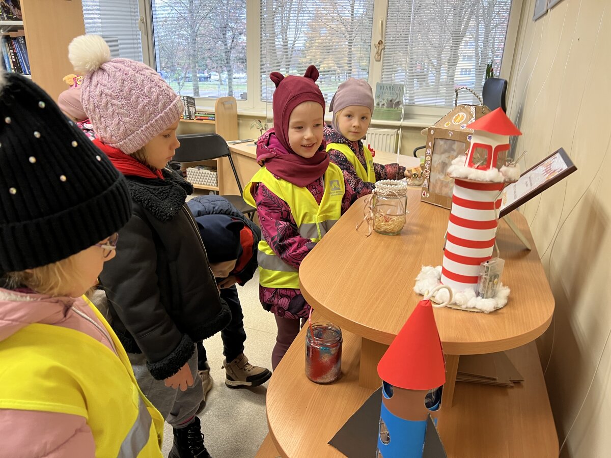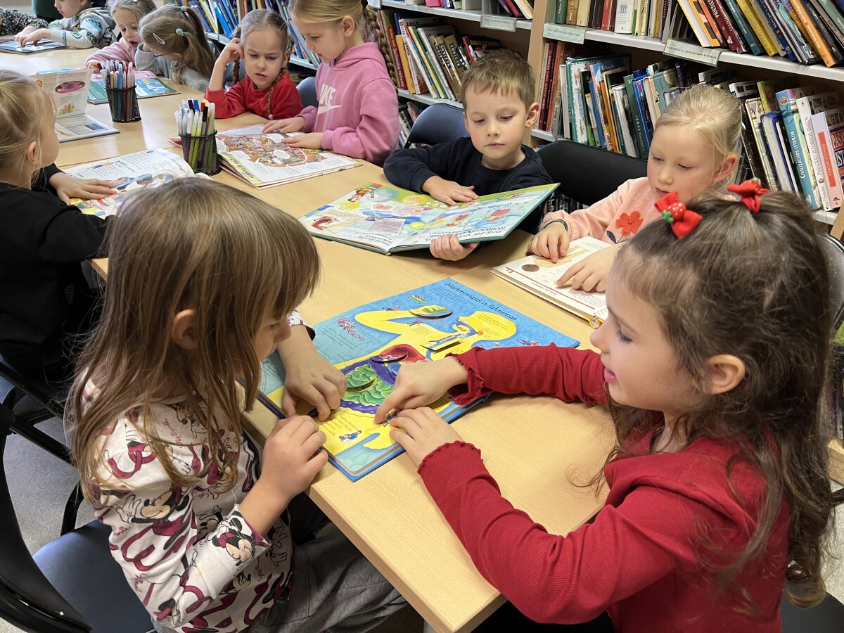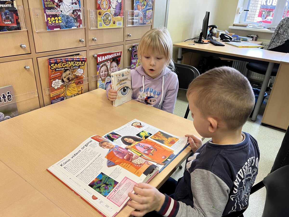 Lapkričio 14 d. „Drugelių“ grupės ugdytiniai lankėsi Šiaulių miesto savivaldybės viešosios bibliotekos „Aido“ filiale. Bibliotekoje mus pasitiko bibliotekininkė, kuri buvo paruošusi įvairių knygų ir informacinių plakatų apie žmogaus kūną bei jo sandarą. Vaikai susidomėję klausėsi pasakojimo, kartu aptarė kūno dalis, jų funkcijas, atsakinėjo į klausimus. Po pokalbio ir knygelių apžiūrėjimo vaikams buvo pasiūlyta atlikti užduotėlę „Žmogaus kūnas“. Vaikai aktyviai įsitraukė į veiklą, kruopščiai atliko užduotis, lygino paveikslėlius, įvardijo kūno dalis. Veikla padėjo jiems geriau įtvirtinti savaitės temą ir pritaikyti žinias praktiškai. Apsilankymo metu apžiūrėjome ir mūsų grupės eksponuojamą tėvelių ir vaikų kūrybinių darbų parodą „Žibintų šviesa – širdžių šiluma“. Vaikai su didžiuliu džiaugsmu ieškojo savo žibintų, pasakojo, kaip juos kūrė kartu su tėveliais. Išvyka suteikė vaikams daug naujų įspūdžių, žinių ir teigiamų emocijų. Ačiū bibliotekai už šiltą priėmimą, galimybę praturtinti vaikų žinias.