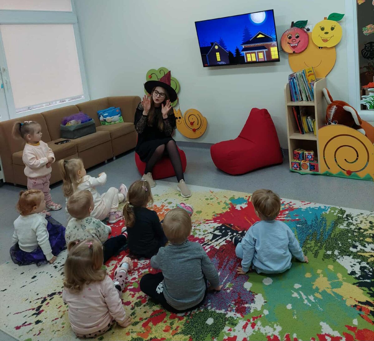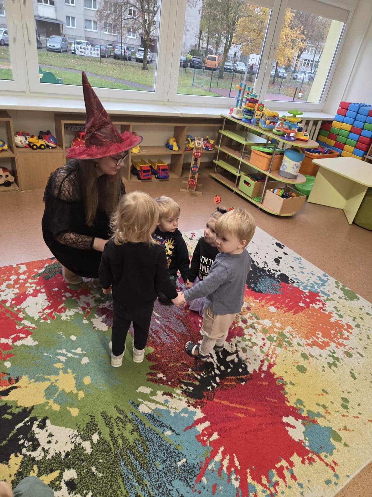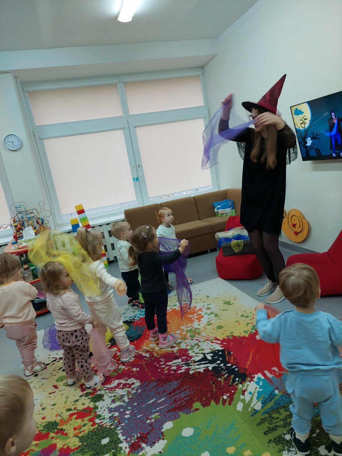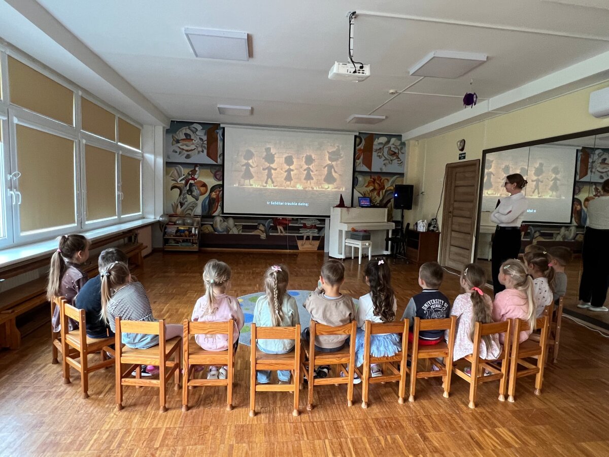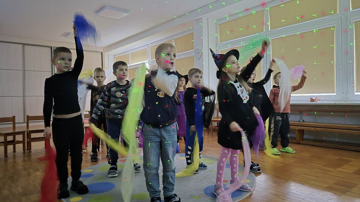 Visą paskutinę spalio savaitę buvo vykdoma intensyvi muzikinių bei judesio veiklų programa, kurios tikslas – per teminę prizmę skatinti vaikų kūrybiškumą, ritmo pojūtį, motorikos koordinaciją ir emocinę raišką. ​Šios savaitės metu buvo integruojami įvairūs ugdymo metodai. Buvo atliekami šokiai ir kiti teminiai judesiai, kurie reikalavo išlaikyti lėtą, valdomą judesį, lavinant pusiausvyrą ir kūno valdymo įgūdžius. Taip pat buvo šokama su papildomomis priemonėmis – skarelėmis, kas skatino judesio plastikos plėtrą, vizualiai iliustruojant „vaiduoklių skraidymą“ ar „šešėlių virpėjimą“ ir ugdė gebėjimą sinchronizuoti judesį su muzika. ​Didelis dėmesys buvo skirtas ritmo ugdymui, naudojant tiek tradicines, tiek netradicines priemones: ​ plojimus, spragsėjimą, tapšnojimą ir žingsnius. Vaikai kūrė Moliūgadienio tematikos ritmus.​ Mažieji aktyviai grojo perkusiniais muzikos instrumentais, originaliai naudojo popieriaus lapus, imituojant „šnabždesius“. Tai skatino kūrybiškumą ieškant naujų garsų ir gerino tembrinę klausą. Muzikinėse pamokėlėse netrūko ir kitų veiklų: „klausimų puode“ vaikai ieškojo pasislėpusių teminių užduotėlių, buvo klausomasi specialiai parinktų dainelių apie šešėlius, monstriukus ir vaiduoklius. Tai ugdė muzikinės kalbos suvokimą ir gebėjimą atpažinti muzikos formą bei emocinę nuotaiką. Per žaidimą vaikai mokėsi imituoti vaiduokliuko garsus, o tai skatino ugdyti balso intonaciją ir tembrą. Pabaigai, mokytoja pakvietė į vaiduokliukų diskoteką, kurioje vaikai galėjo laisvai ir spontaniškai išreikšti save per judesį, stiprinant grupės socialinę integraciją ir leidžiant patirti džiaugsmą. Džiugu, kad savaitės metu pasiektas puikus edukacinės vertės ir pramogos balansas. Šios veiklos padėjo stiprinti vaikų fizinį aktyvumą, muzikalumą, bendravimo įgūdžius ir, svarbiausia, suteikė progą kūrybiškai ir linksmai praleisti laiką.